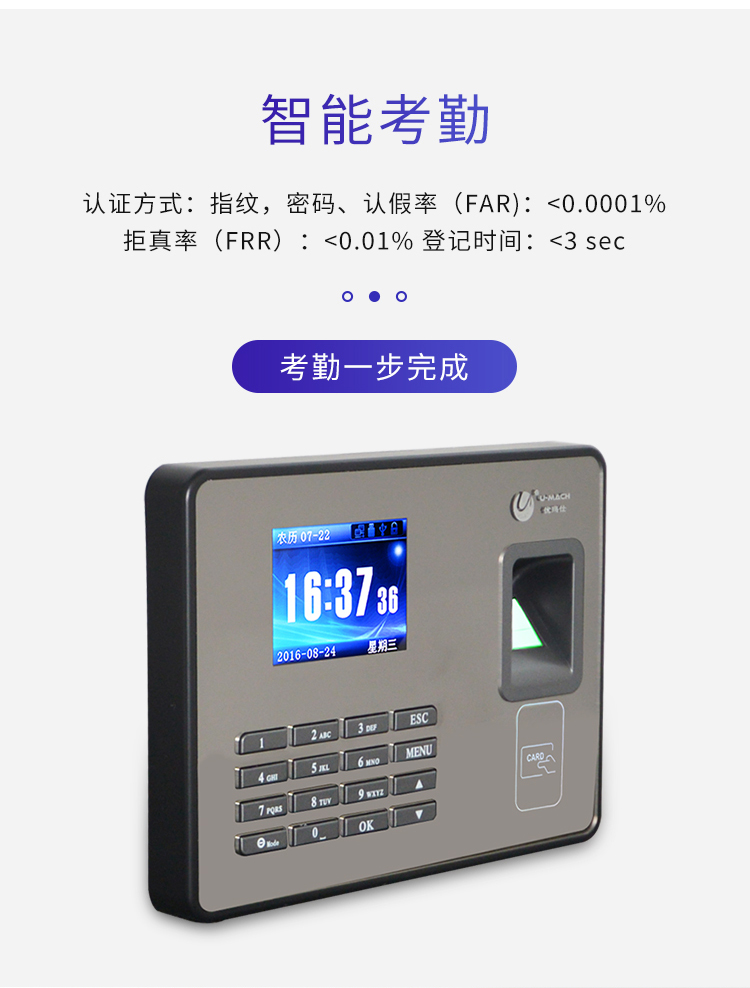 商品名称: 优玛仕 U-MACH U-Z7 考勤机 指纹识别