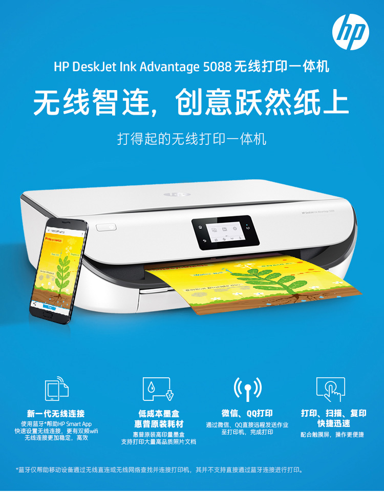 • 商品名称:惠普 HP 5088(自动双面打印/100页/彩色喷墨)多功能一体机