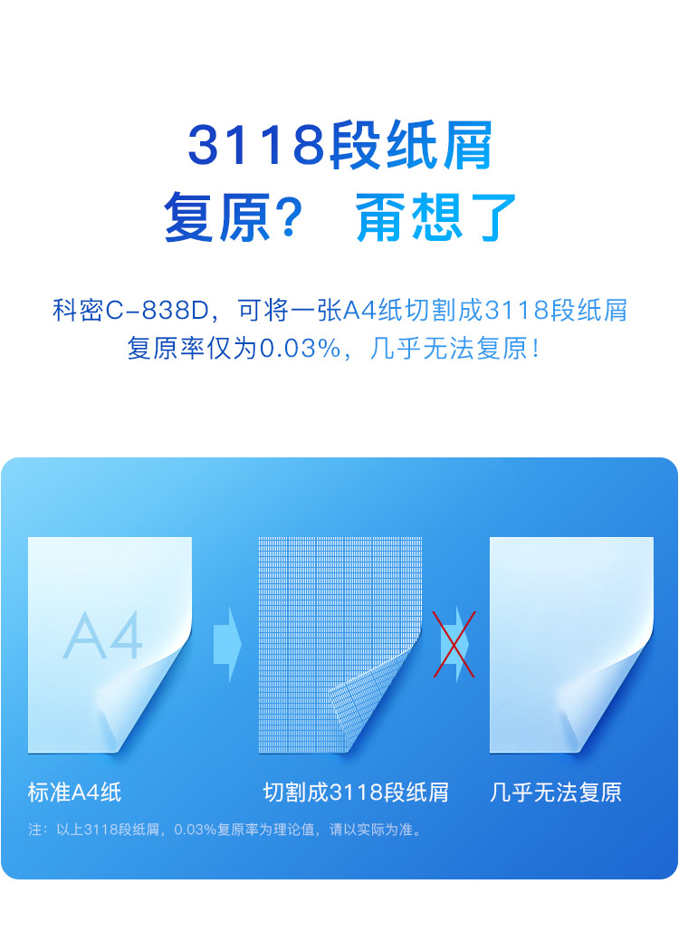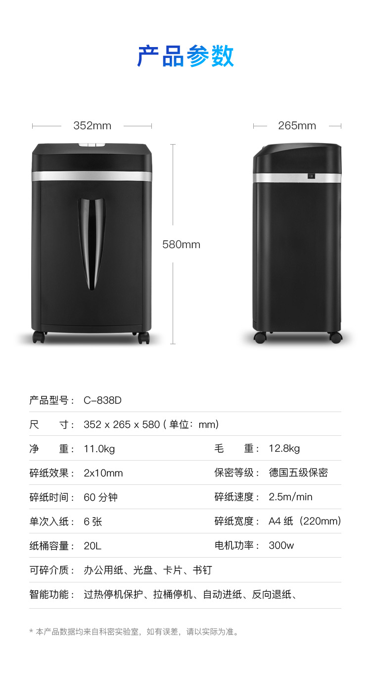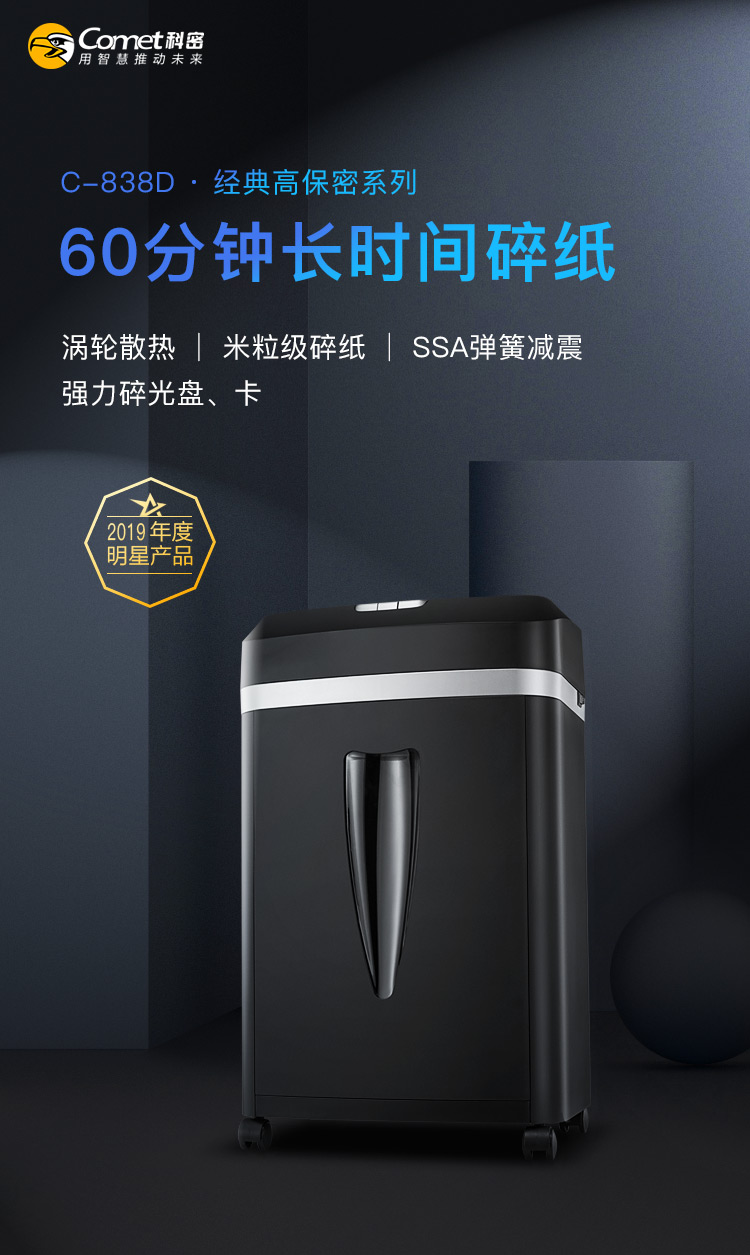 • 商品名称:科密 COMET C-838D中型高保密长时间碎纸机办公 光盘信用卡粉碎机