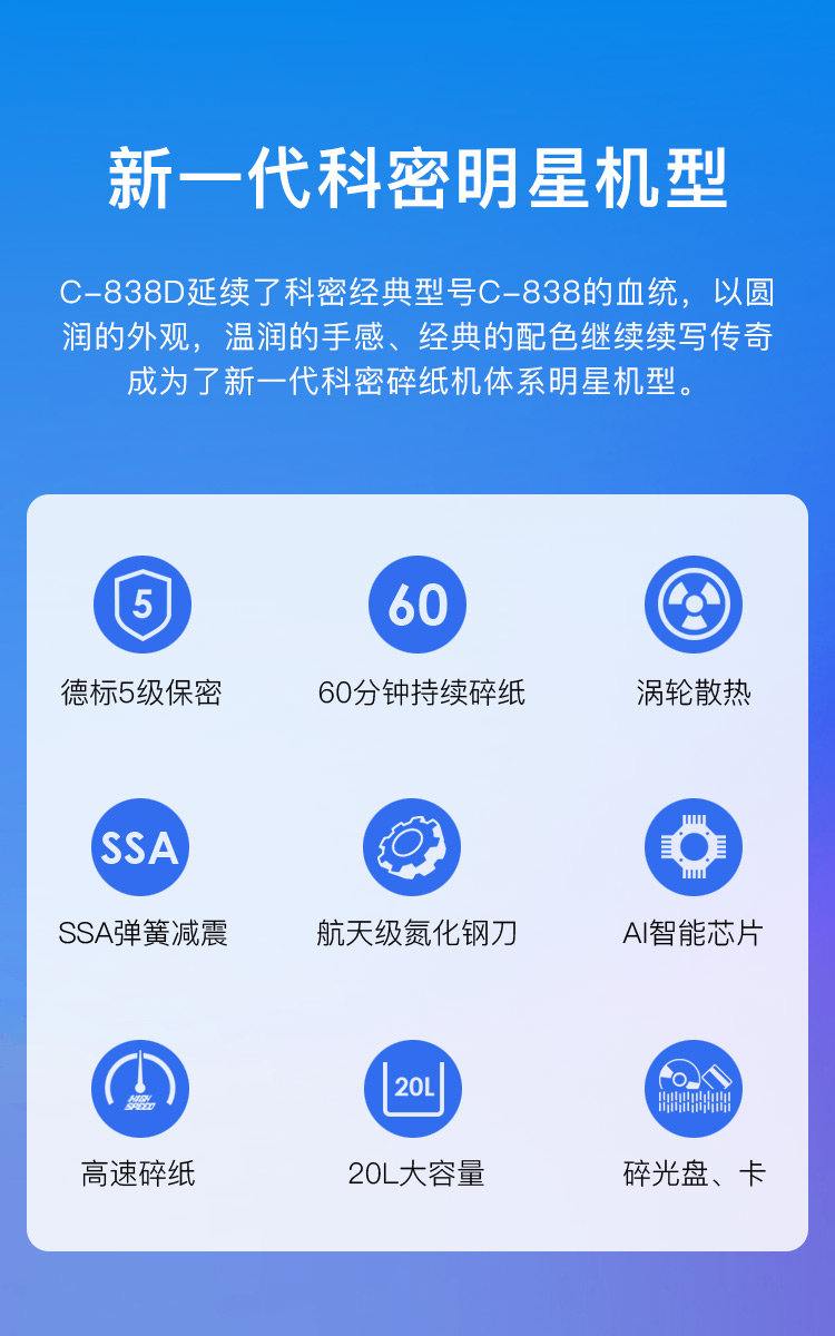 商品名称: 科密 COMET C-838D中型高保密长时间碎纸机办公 光盘信用卡粉碎机
