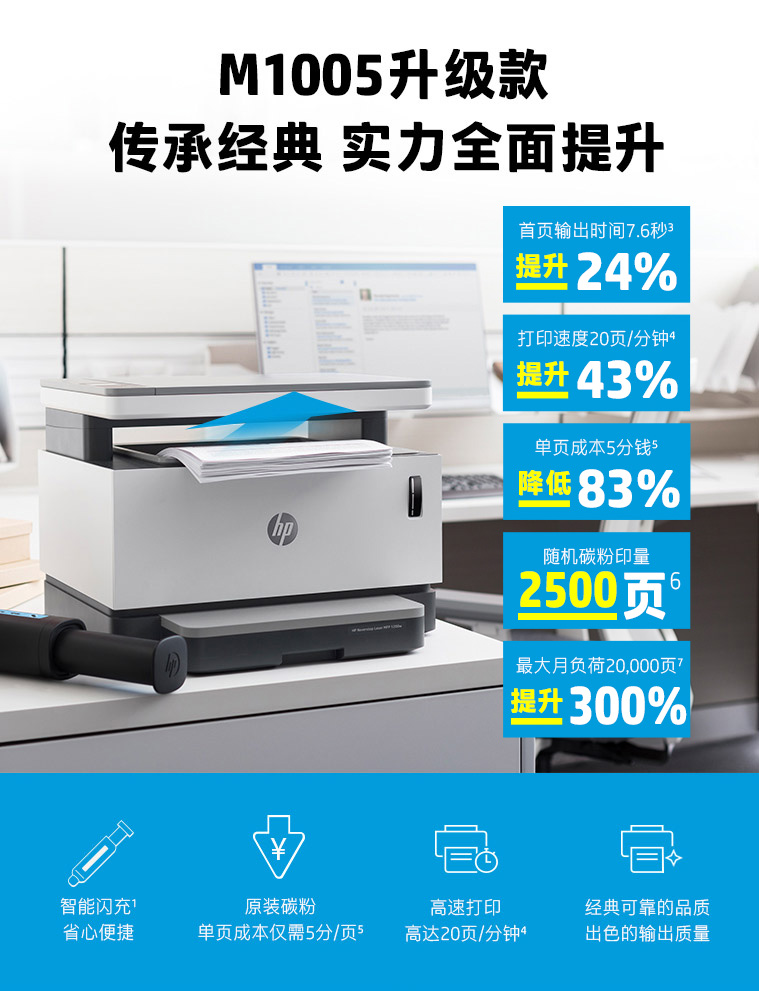 • 商品名称:惠普 HP MFP1005N(手动双面打印/150页/黑白)多功能一体机