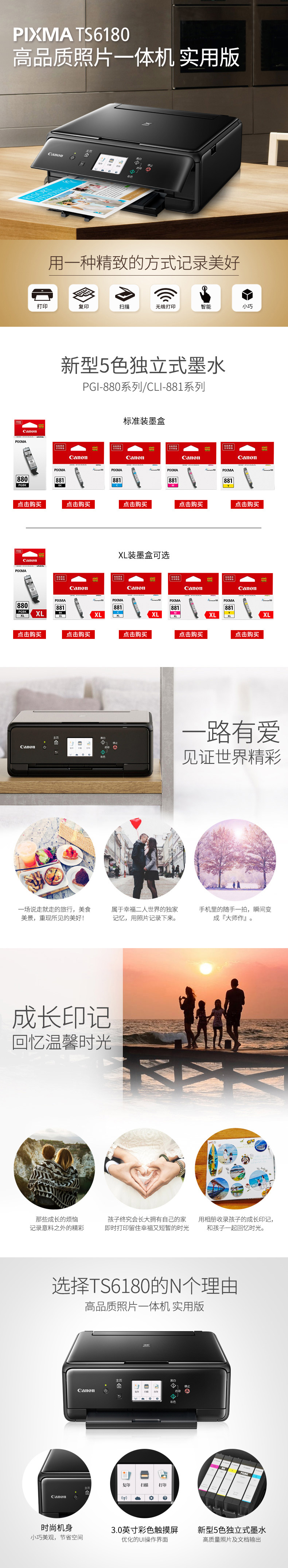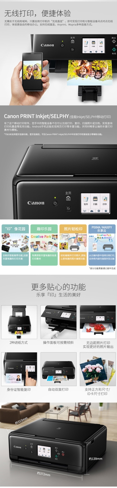 • 商品名称:佳能 CANON TS6180(自动双面打印/100页/彩色喷墨)多功能一体机