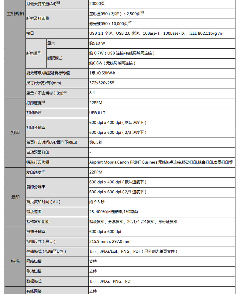 • 商品名称:佳能 CANON IC MF913W(150页/黑白激光)多功能一体机