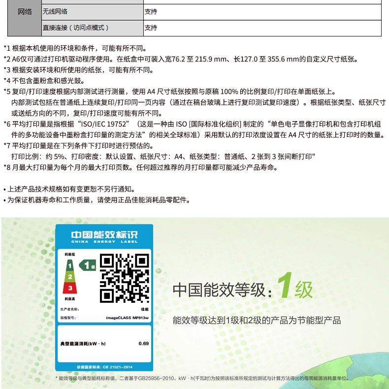 商品名称: 佳能 CANON IC MF913W(150页/黑白激光)多功能一体机
