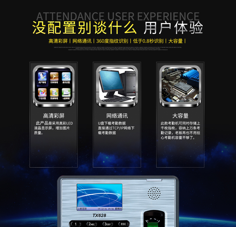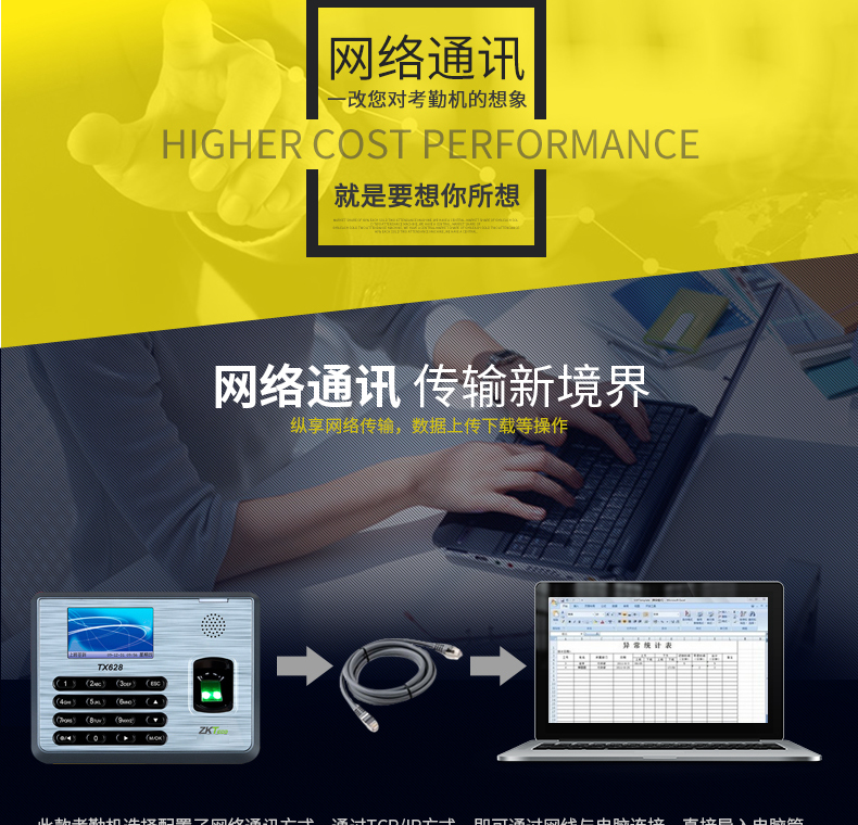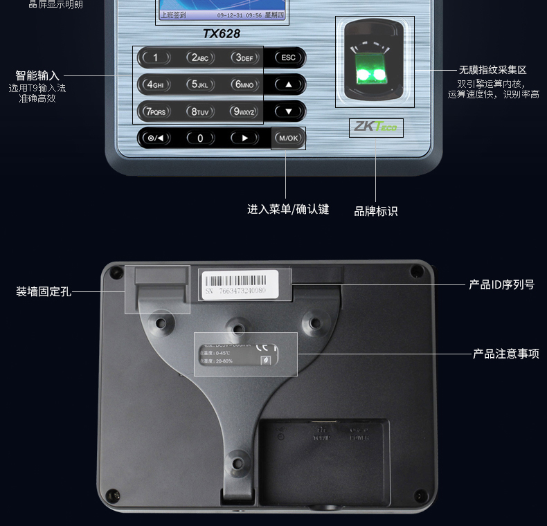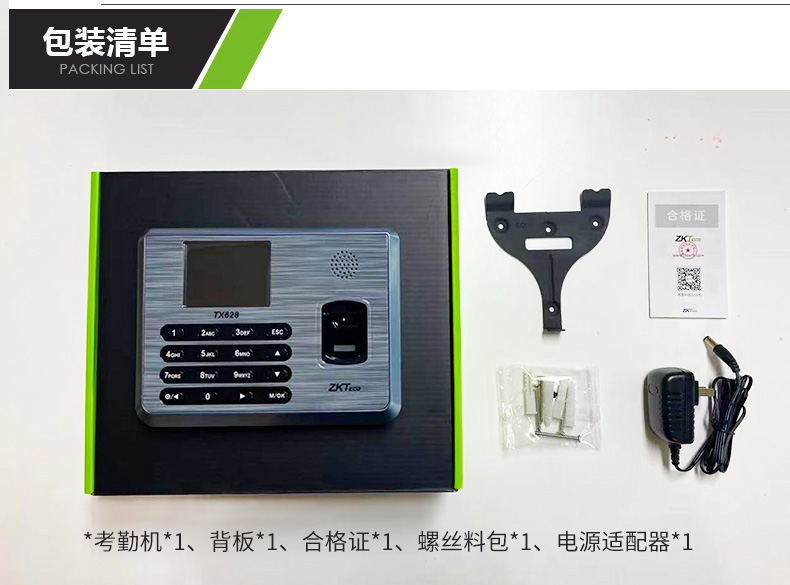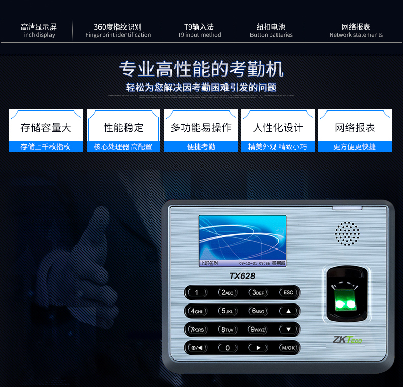 • 商品名称:中控锐指 ZKTeco TX628 普及型 网络考勤机