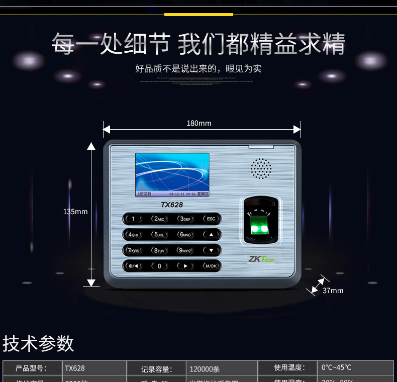 办公设备  > 扫描设备  > 考勤机  >  中控锐指/ ZKTeco  >  中控锐指 ZKTeco TX628 普及型 网络考勤机