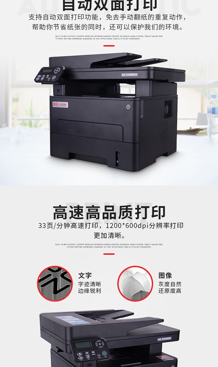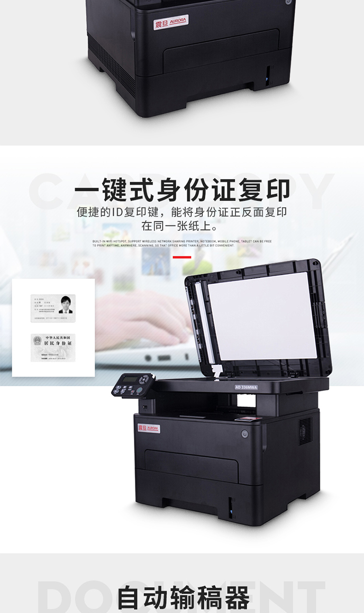 办公设备  > 打印/复印设备  > 复合机/一体机  >  震旦/AURORA  >  震旦(AURORA)AD336MWA (有线网络打印/250页/黑白激光) 多功能一体机