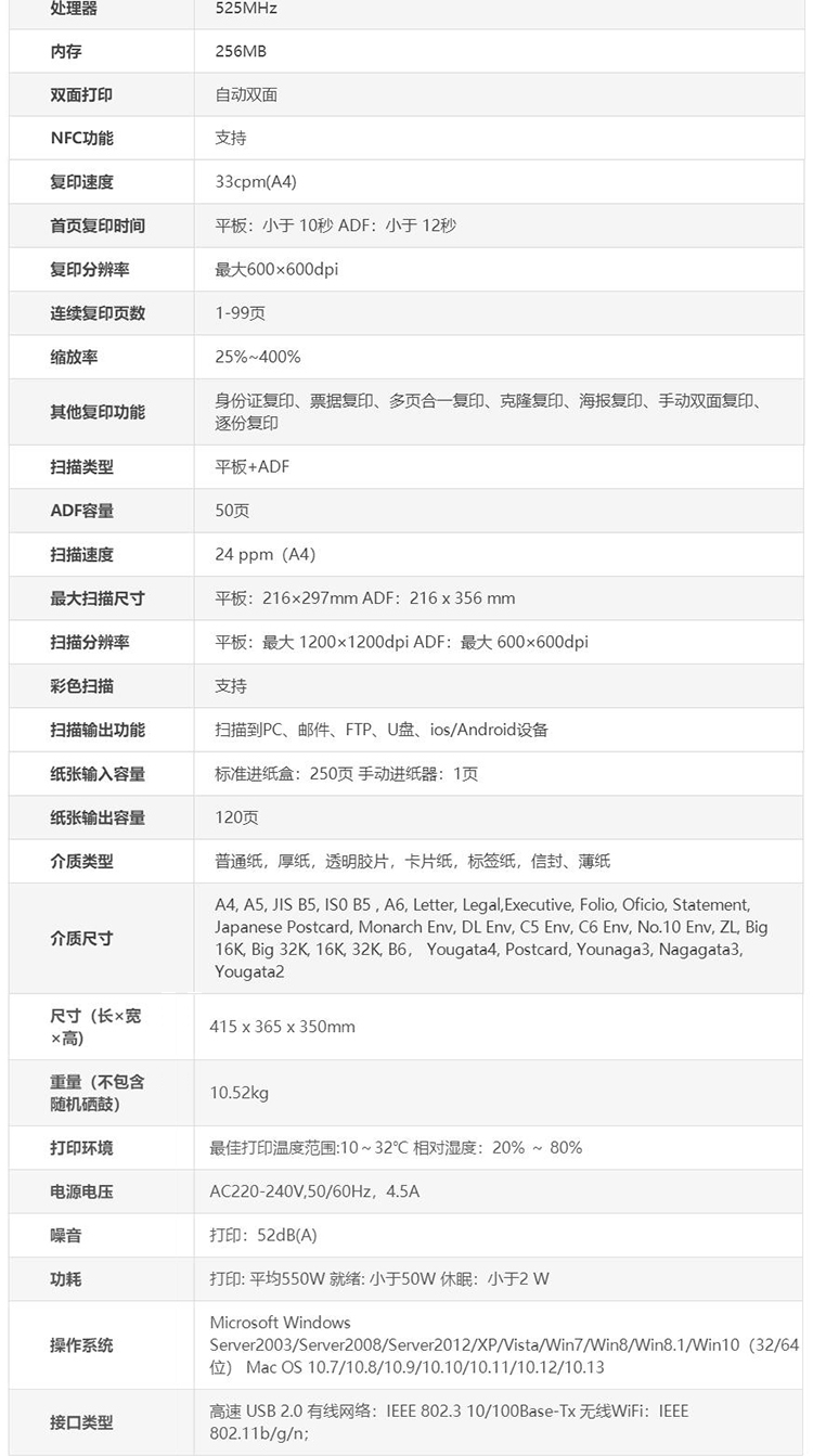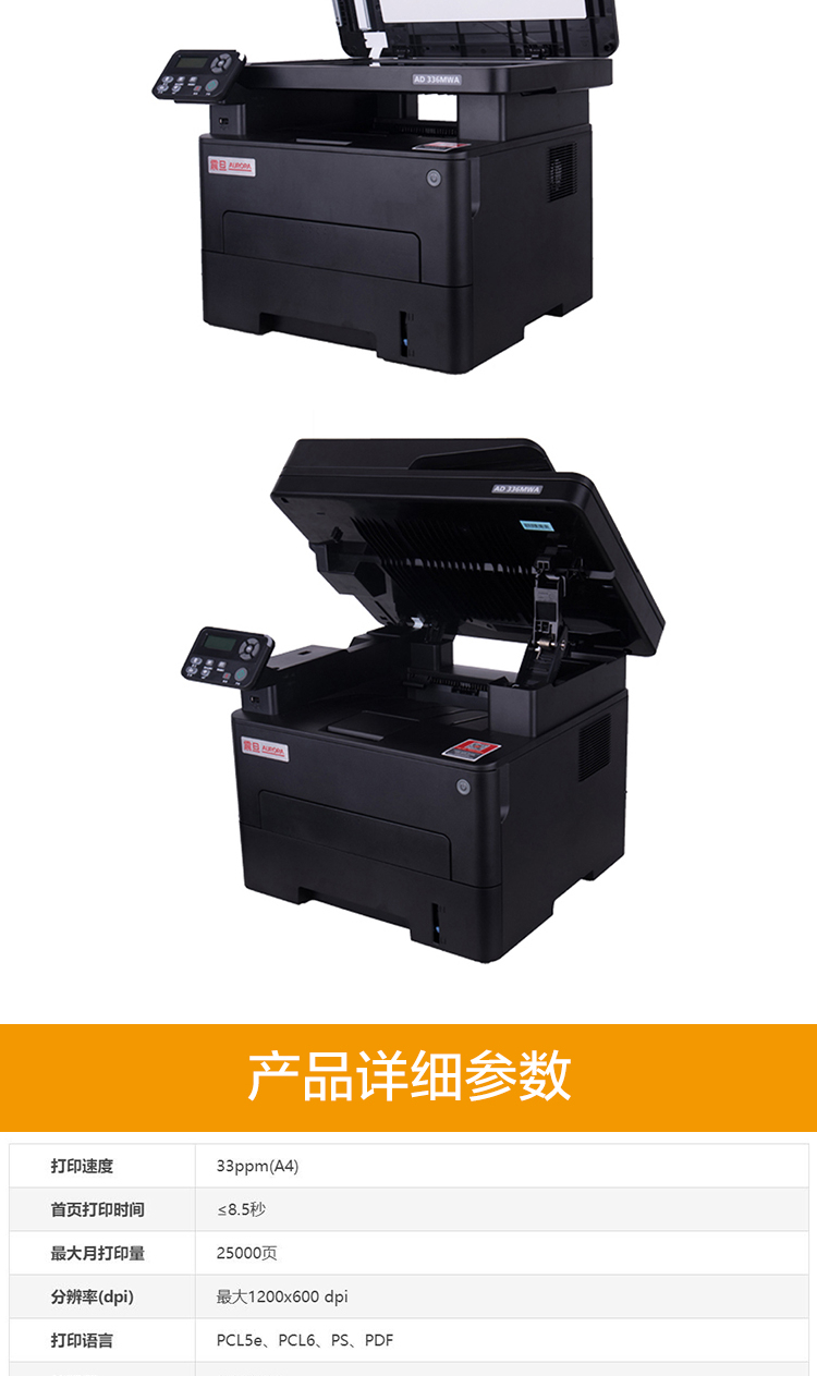 商品名称: 震旦(AURORA)AD336MWA (有线网络打印/250页/黑白激光) 多功能一体机