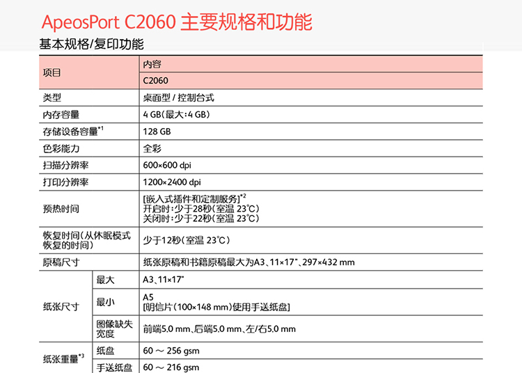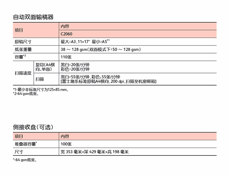 • 商品名称:富士施乐 AP C2060 彩色激光复合机多功能一体机 (主机+四纸盒) 白色(单位:台)