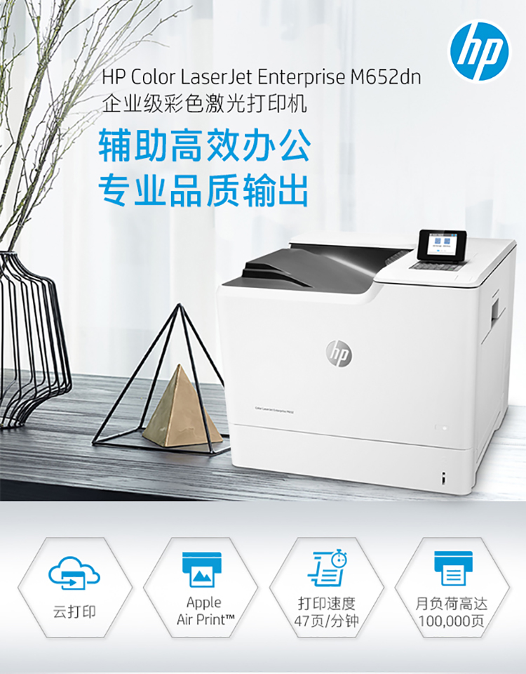 • 商品名称:惠普 HP COLORLASERJET M652DN(无线/有线网络打印/自动双面打印/彩色)激光打印机