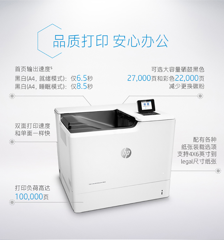 商品名称: 惠普 HP COLORLASERJET M652DN(无线/有线网络打印/自动双面打印/彩色)激光打印机