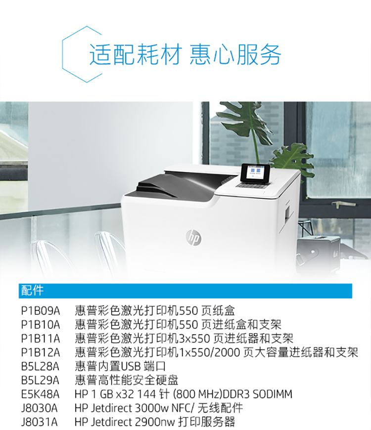 惠普 HP COLORLASERJET M652DN(无线/有线网络打印/自动双面打印/彩色)激光打印机
