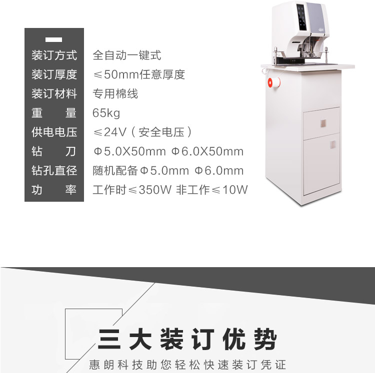 • 商品名称:惠朗(huilang)750B全自动线式档案卷宗装订机/财务凭证装订机 一键完成 单位:台