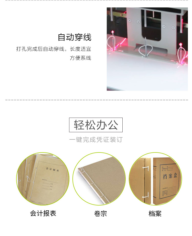 • 商品名称:惠朗(huilang)950B全自动线式人事档案卷宗装订机 一键完成三孔财务凭证线装式装订机 单位:台