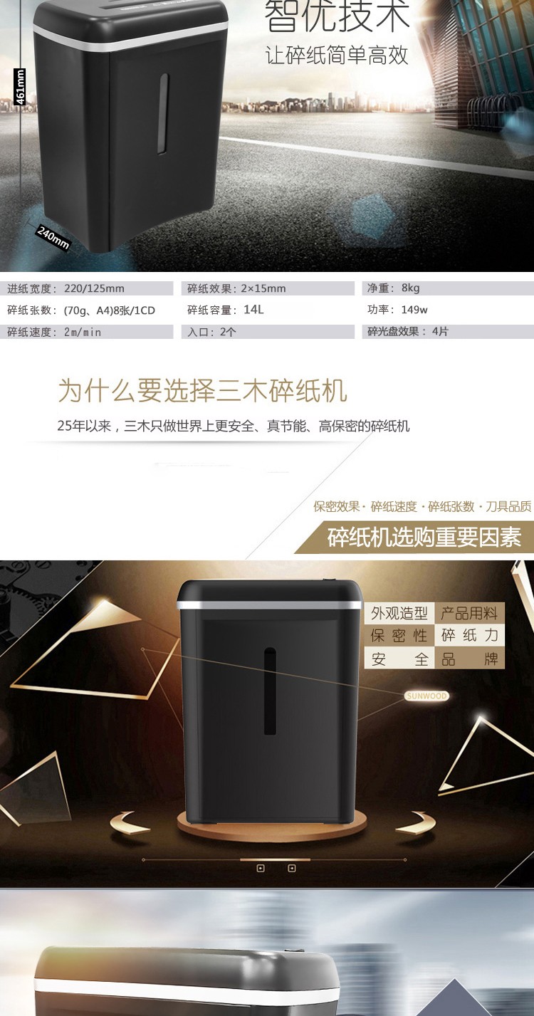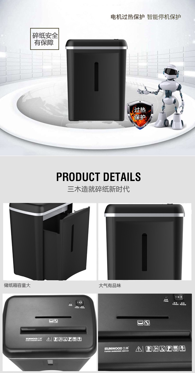 • 商品名称:三木碎纸机SD9101 双入纸口静音 碎纸钉卡光盘CD大功率粉粹机