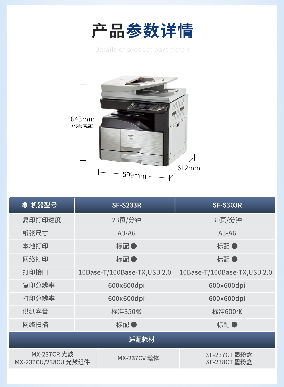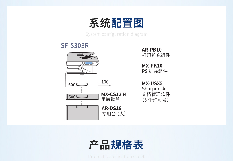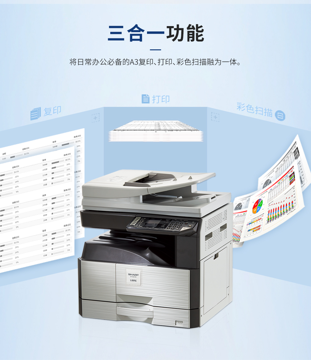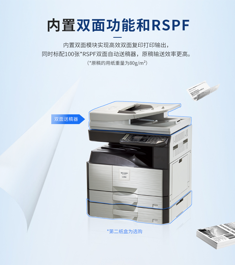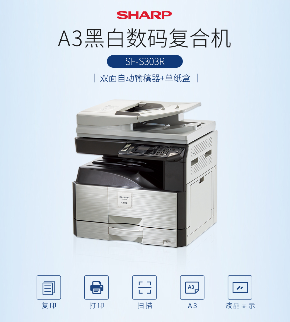 • 商品名称:夏普 SF-S303R 黑白激光复合机(双面自动输稿器+单纸盒)A3数码多功能一体机 灰色 (单位:台)