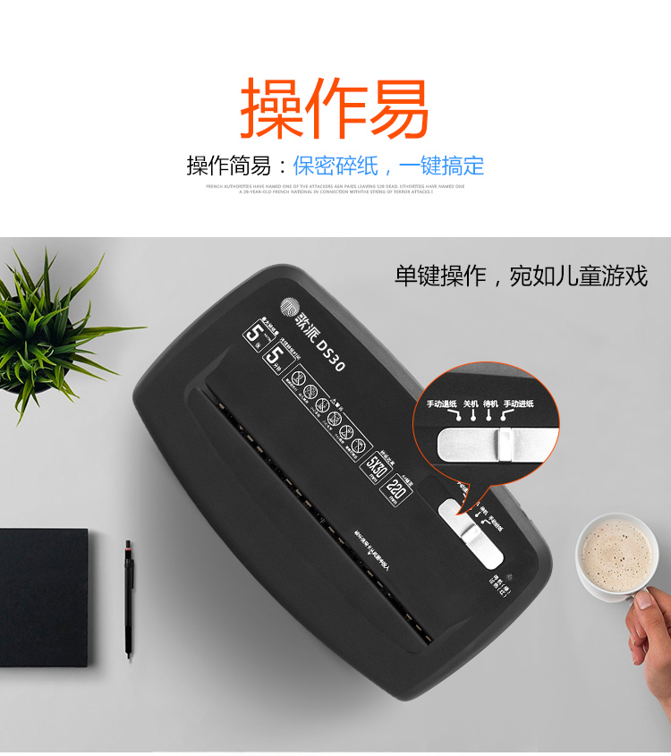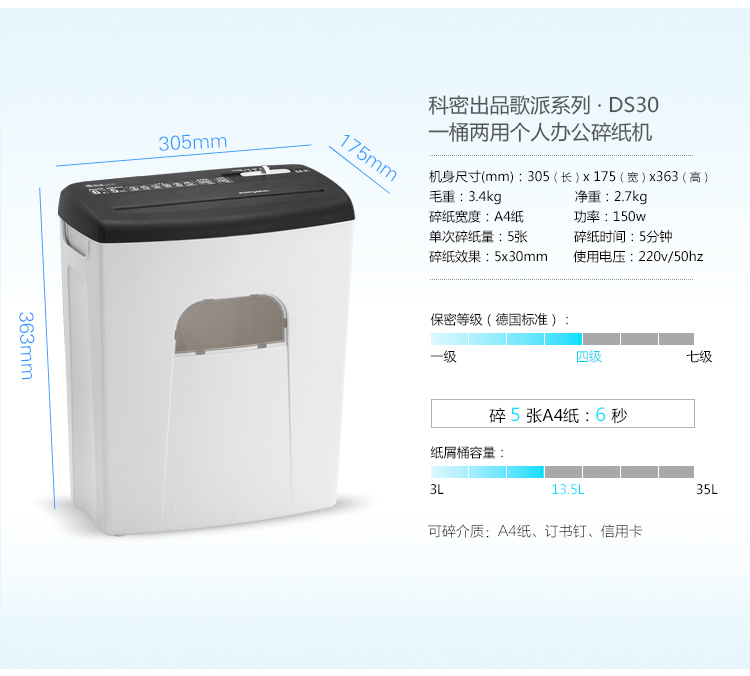 商品名称: 科密 COMET DS30个人家庭办公碎纸机(德国3级保密/可碎卡)