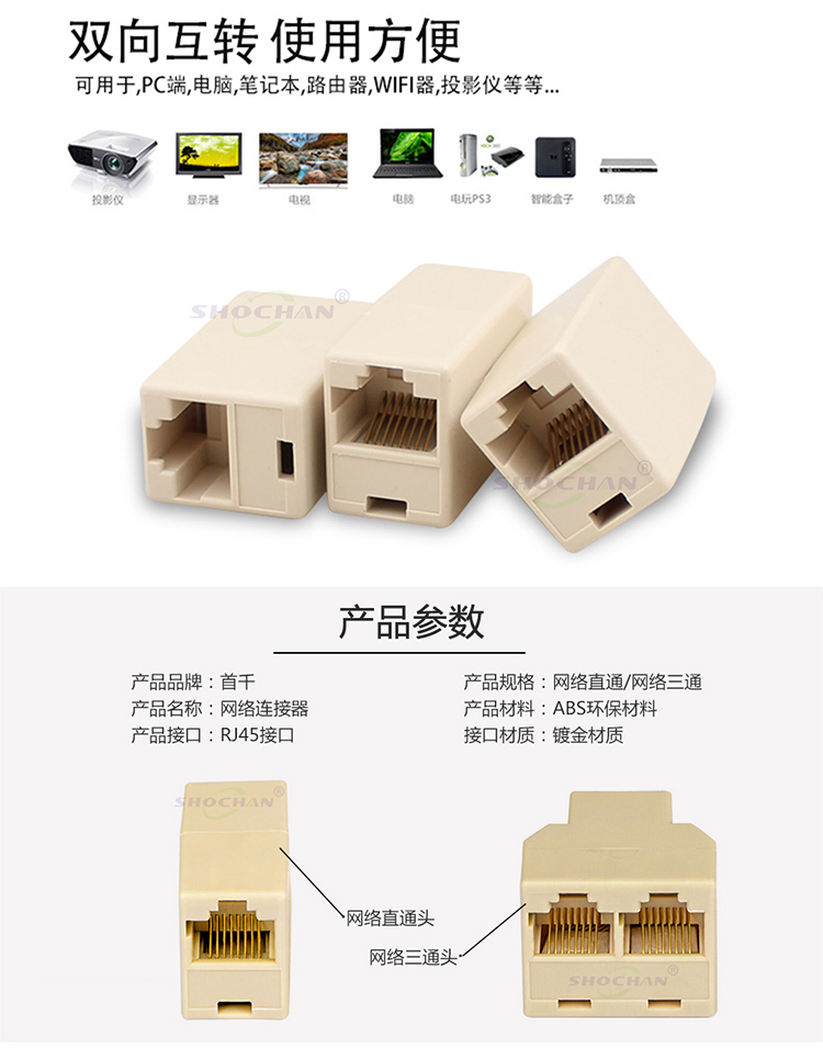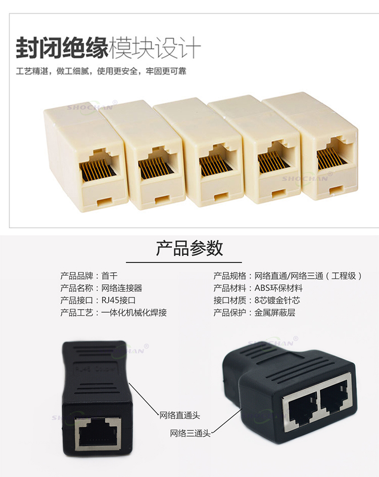 • 商品名称:首千 SQ6867 网络直通头(塑料/铜芯) 黄色(单位:个)