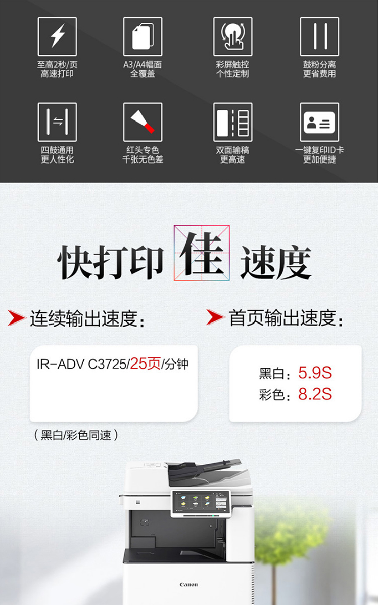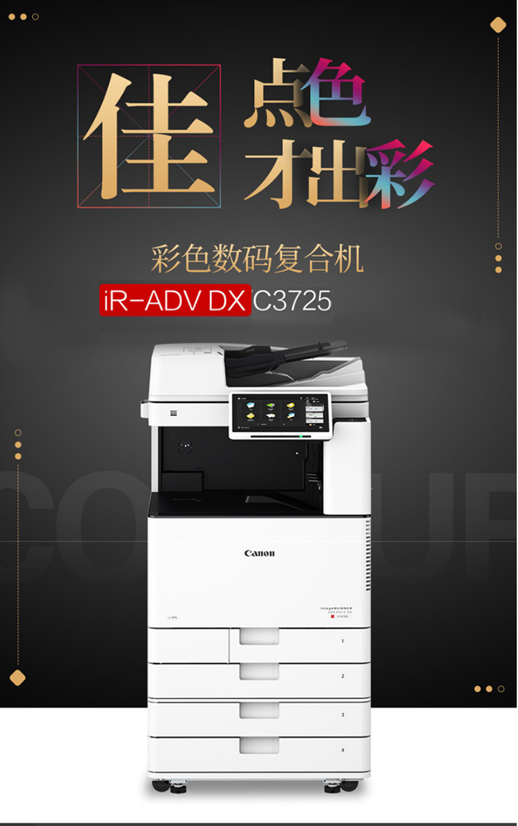 • 商品名称:佳能 iRAC3725 A3彩色激光数码复合机多功能一体机 (主机+输稿器+四纸盒) 白色(单位:台)
