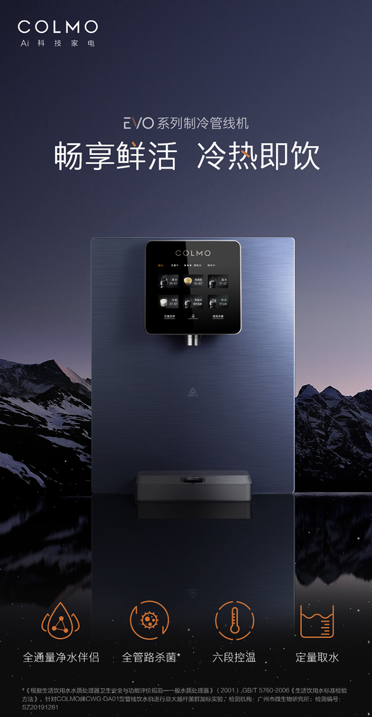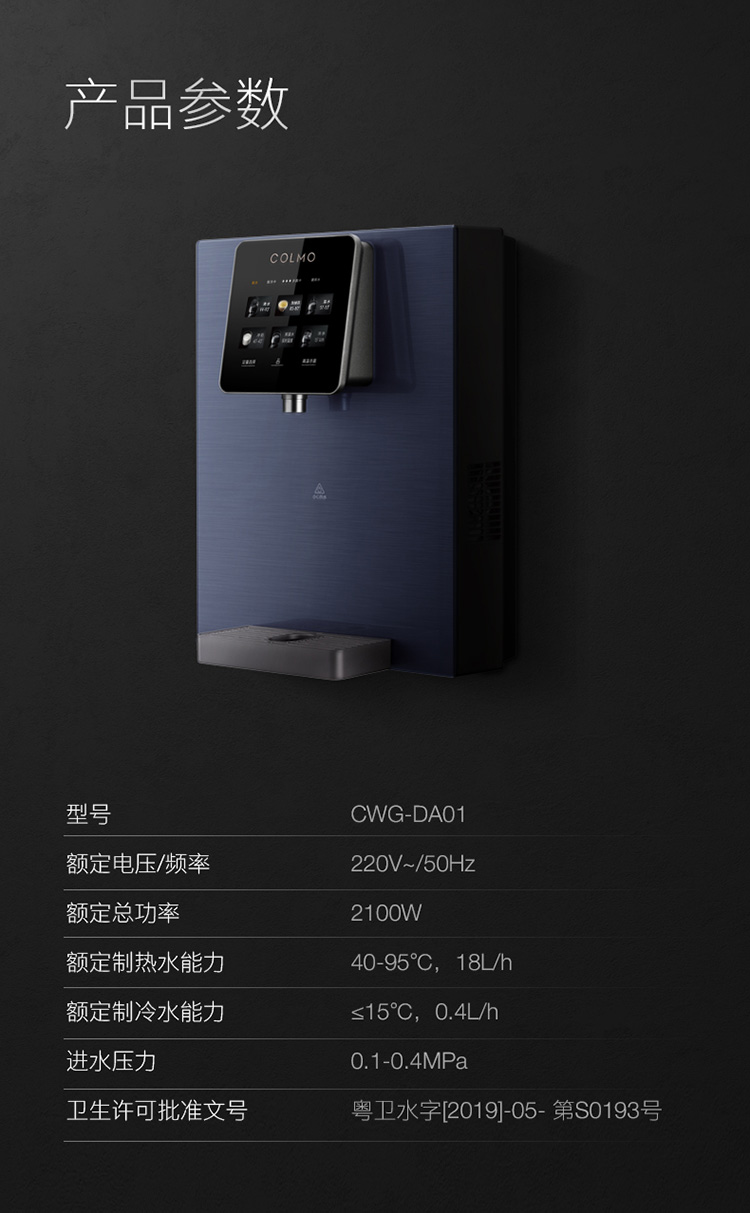 生活电器  > 厨房小家电  > 饮水机  >  美的/Midea  >  美的 CWG-DA01 COLMO EVO系列家用管线机 净水器伴侣 冷热即饮 全管路杀菌 六段控温 壁挂式饮水机 单位:台