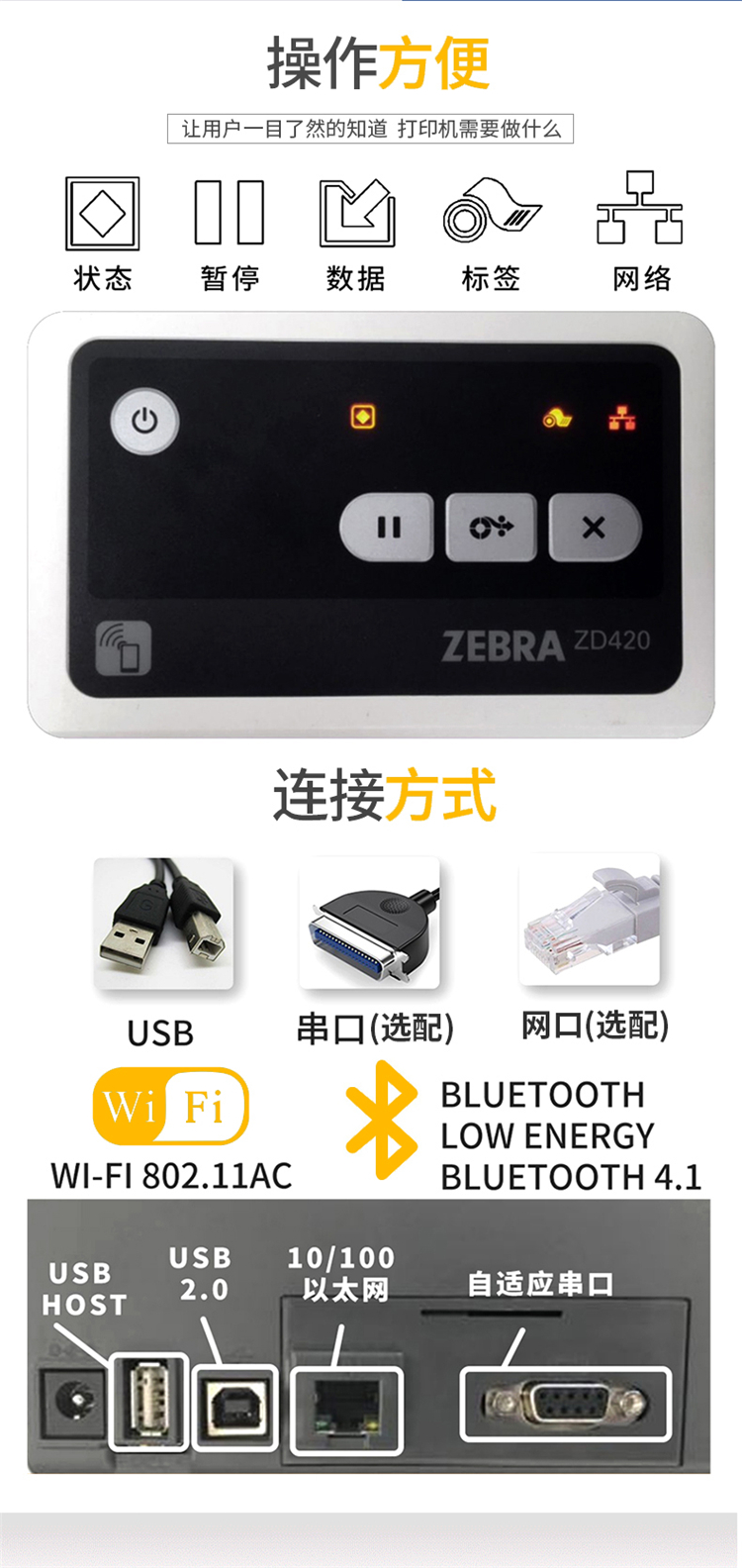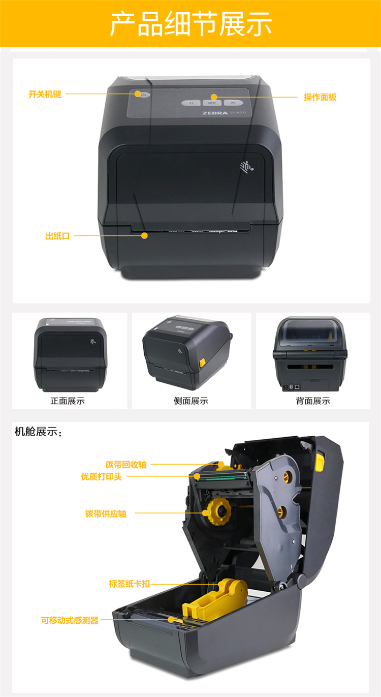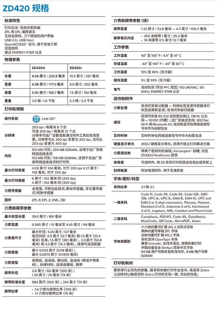 • 商品名称:斑马ZEBRA ZD420T 条码打印机 二维码热敏纸不干胶标签机(热敏/热转印/300DPI)(单位:台)