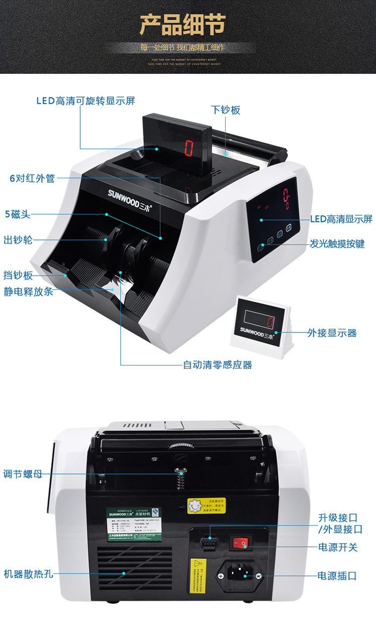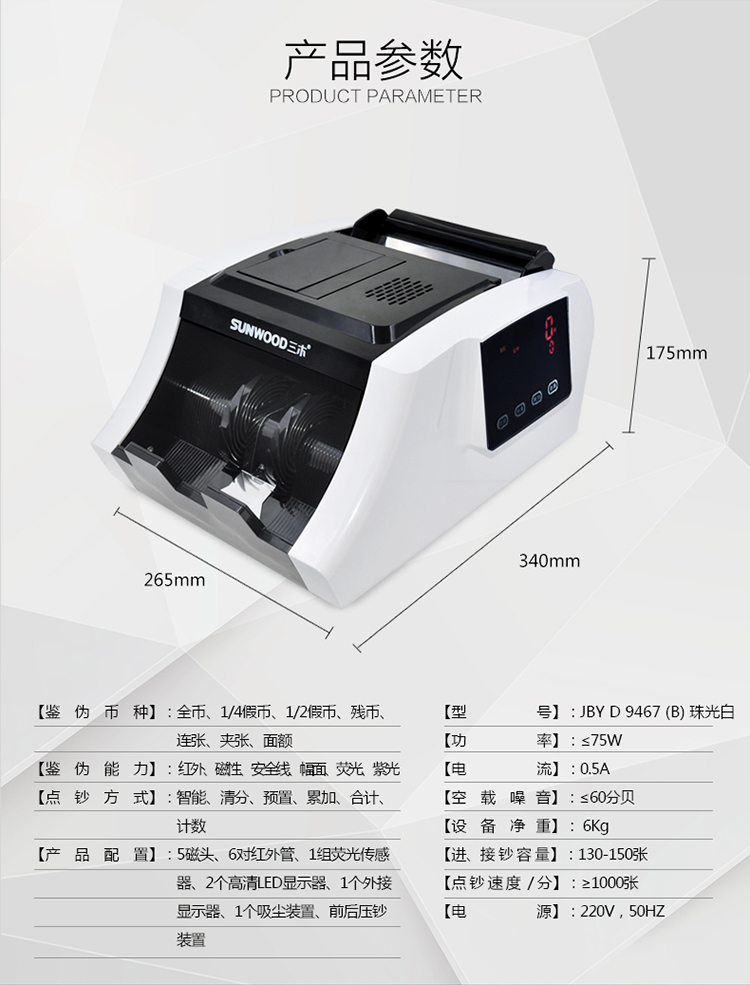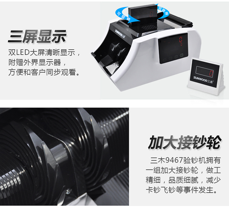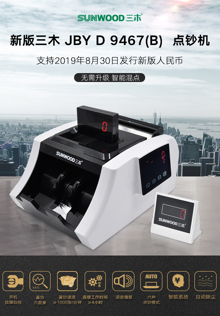 办公设备  > 财务/行政设备  > 点钞机/印钞机  >  三木/SUNWOOD  >  三木 JBY D9467(B) 三屏新版人民币验钞机 银行专用智能语音点钞机 白色(台)