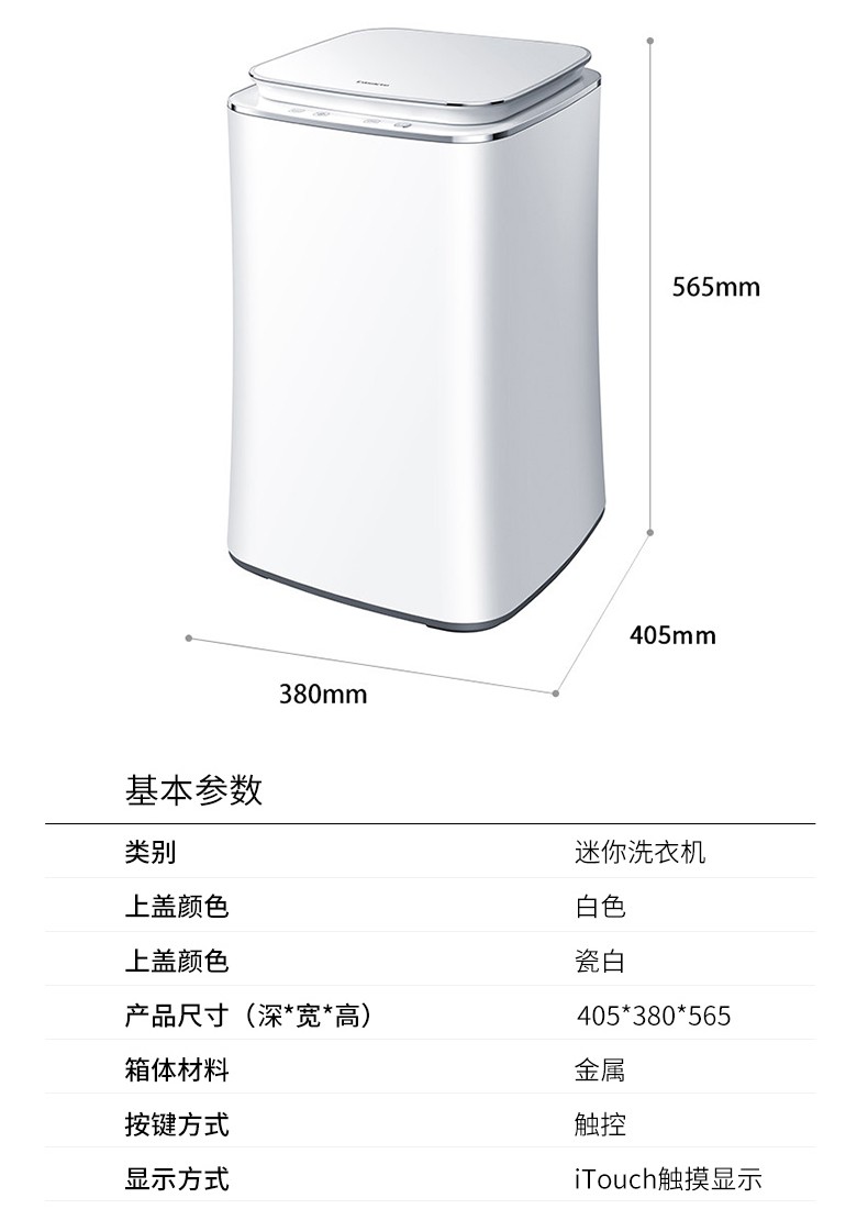 • 商品名称:卡萨帝 CBM1058W1 迷你波轮洗衣机 iTouch+触控(洗衣粉+柔顺剂+洗衣机槽清洁剂套装) (单位:套)