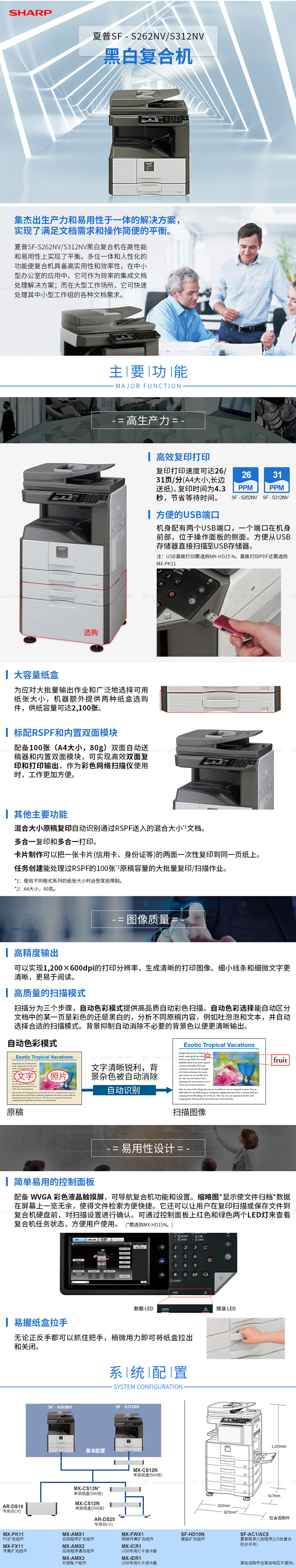 • 商品名称:夏普 SF-S312NV 复合机多功能一体机 双层纸盒+落地式专用台(单位:台)