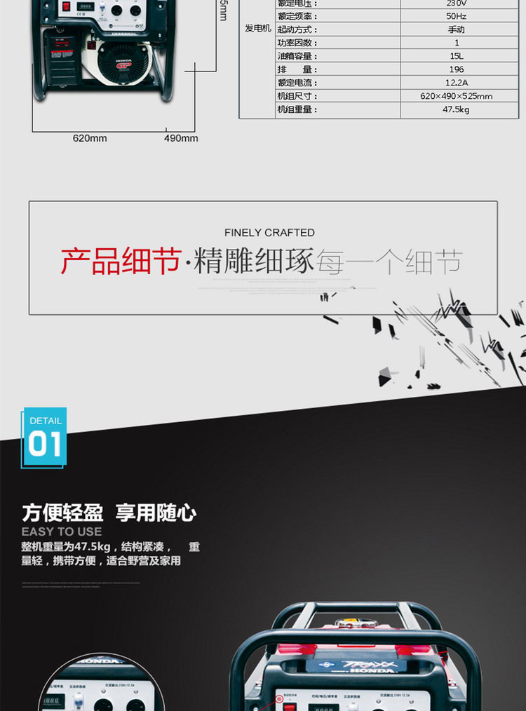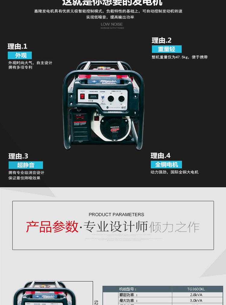 • 商品名称:本田 TG3600XL 3000w 发电机组 黑色 (单位:台)