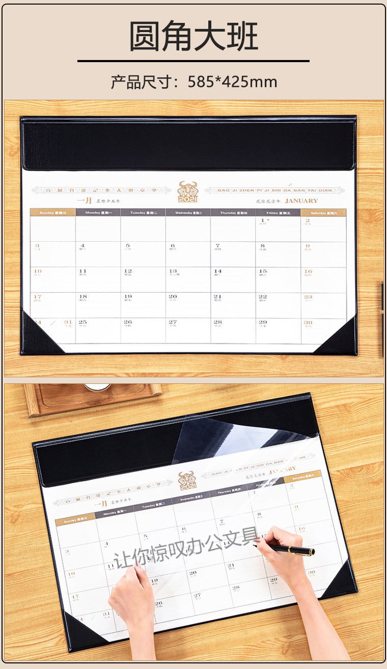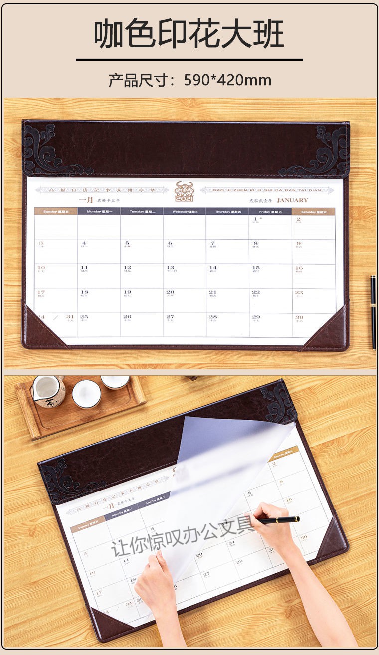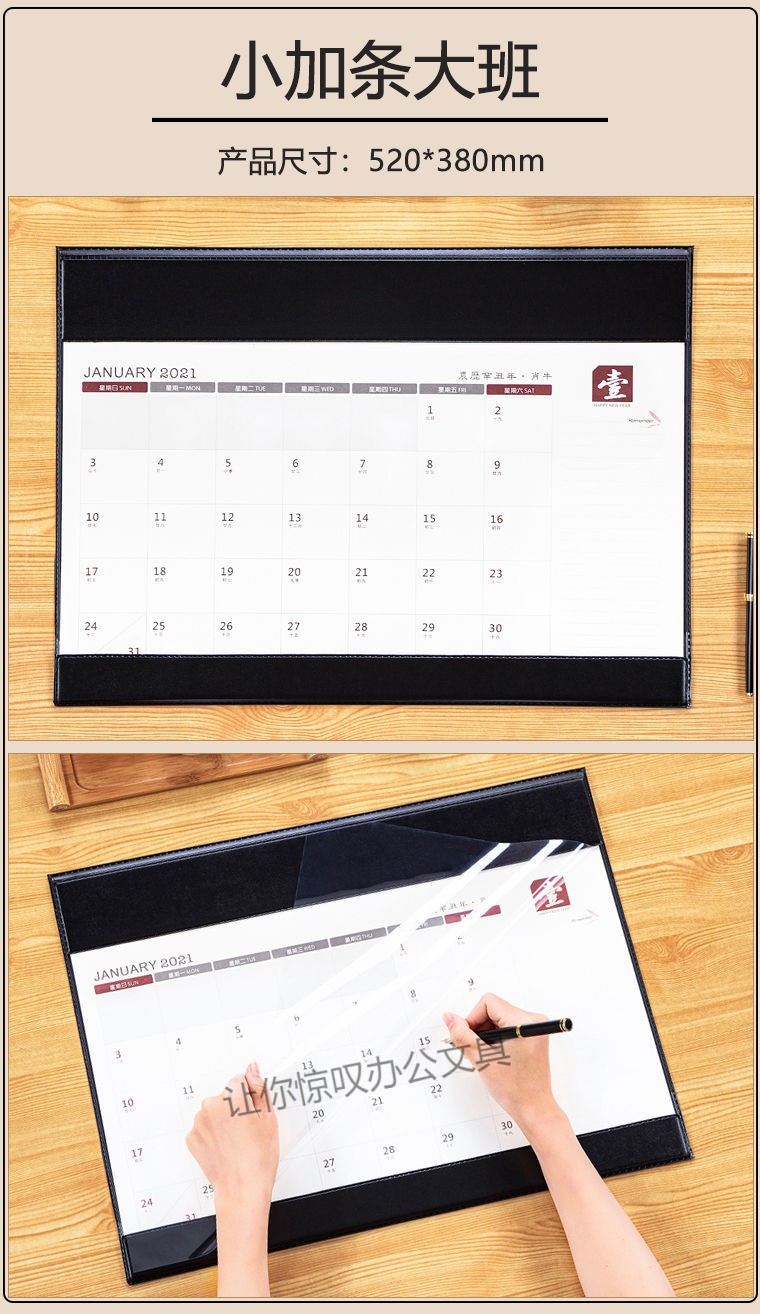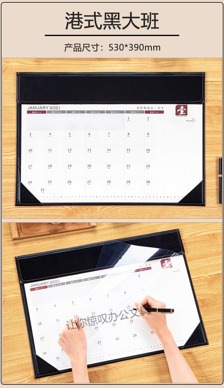 • 商品名称:迈爽 2021年 590*420mm 黑皮桌面日历垫 黑色(单位:本)
