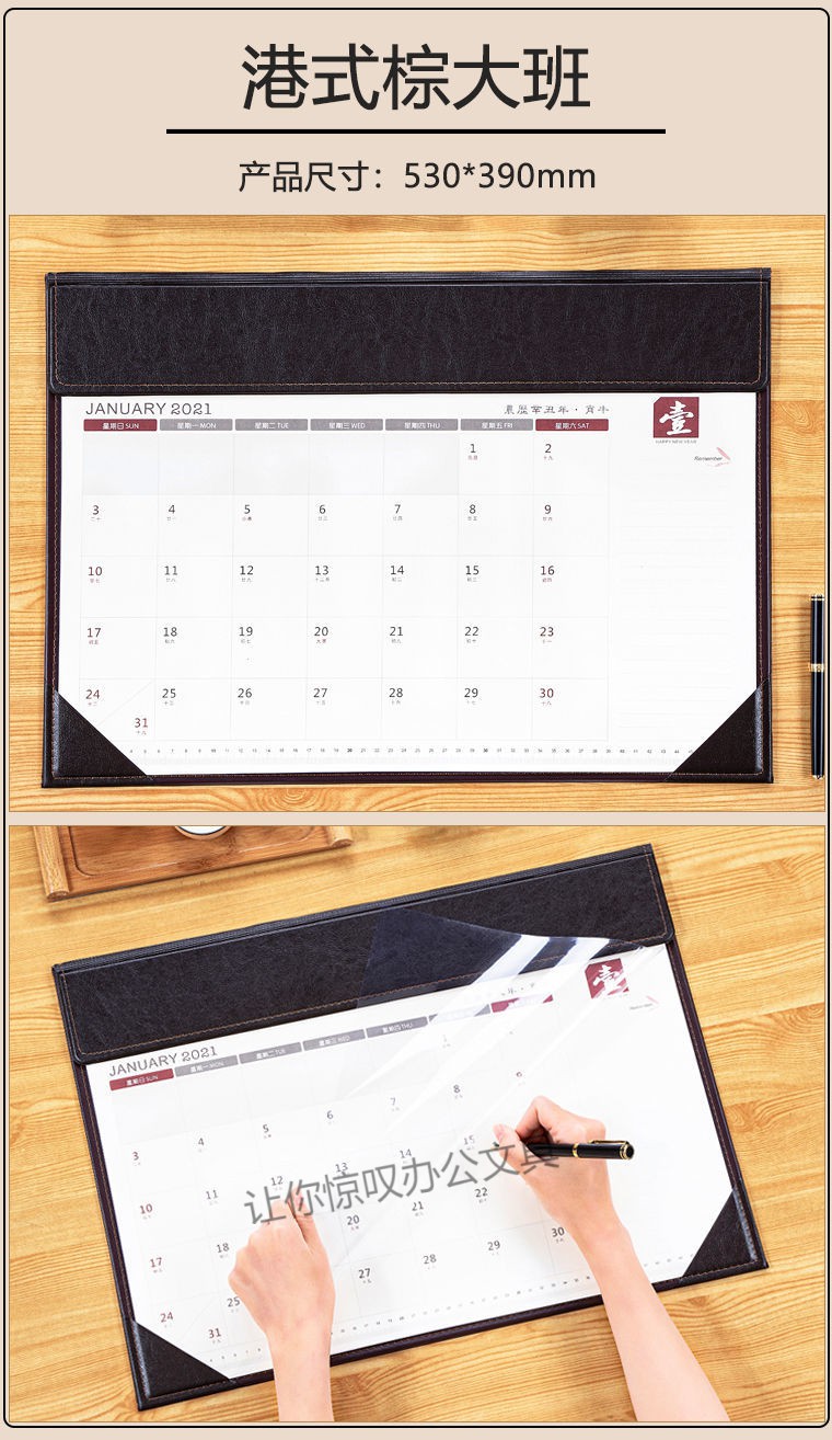 商品名称: 迈爽 2021年 590*420mm 黑皮桌面日历垫 黑色(单位:本)