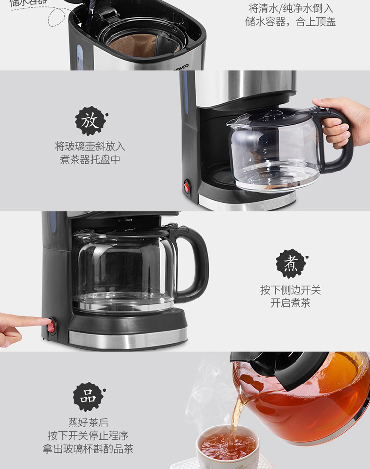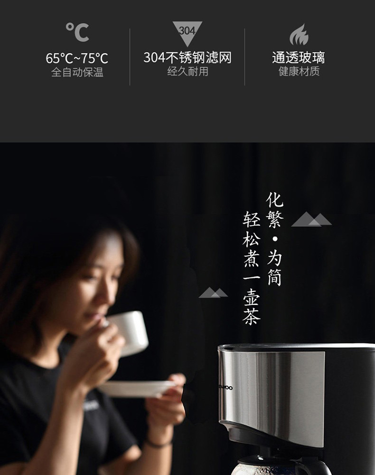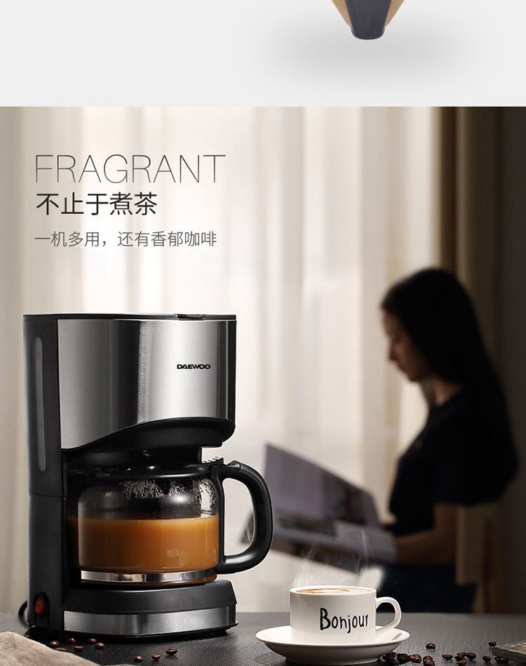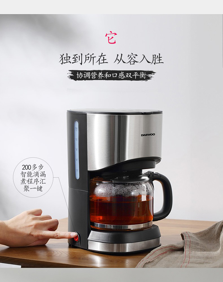 • 商品名称:大宇(DAEWOO) C10 咖啡机家用美式全自动滴漏式咖啡壶养生壶泡茶机多功能茶饮机 标配 银色 (单位:个)