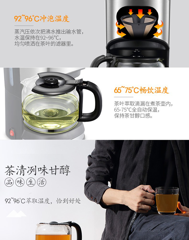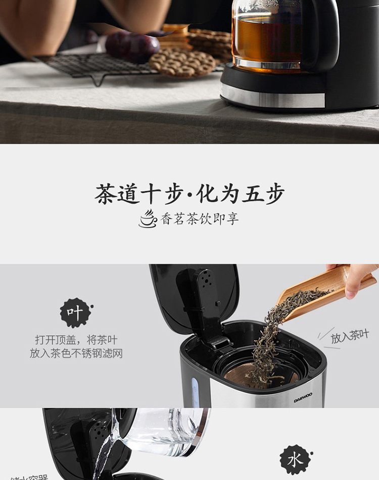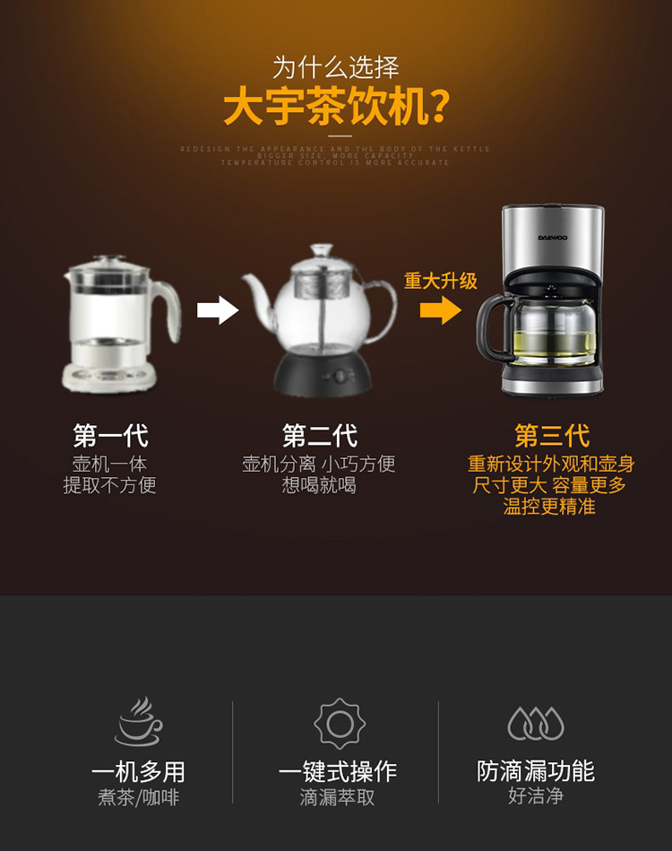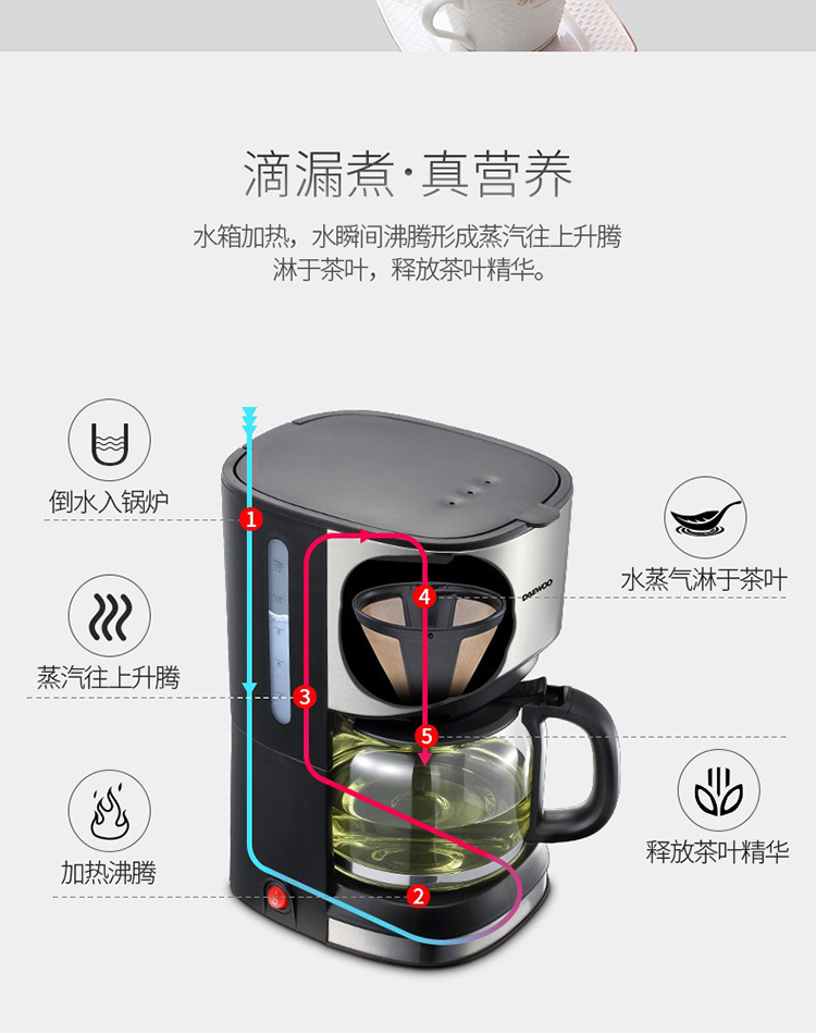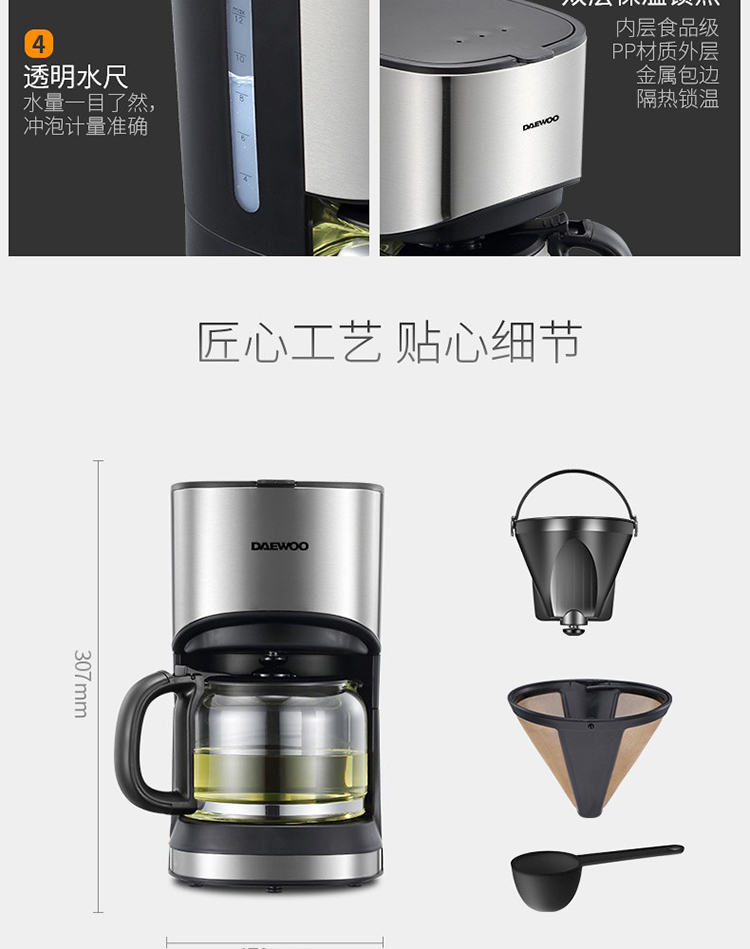 • 商品名称:大宇(DAEWOO) C10 咖啡机家用美式全自动滴漏式咖啡壶养生壶泡茶机多功能茶饮机 标配 银色 (单位:个)