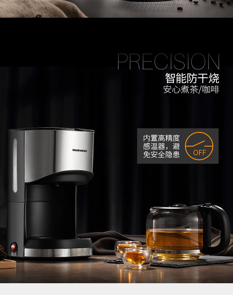 大宇(DAEWOO) C10 咖啡机家用美式全自动滴漏式咖啡壶养生壶泡茶机多功能茶饮机 标配 银色 (单位:个)