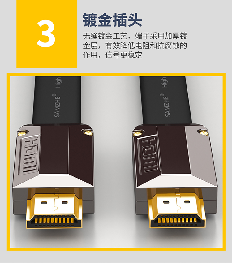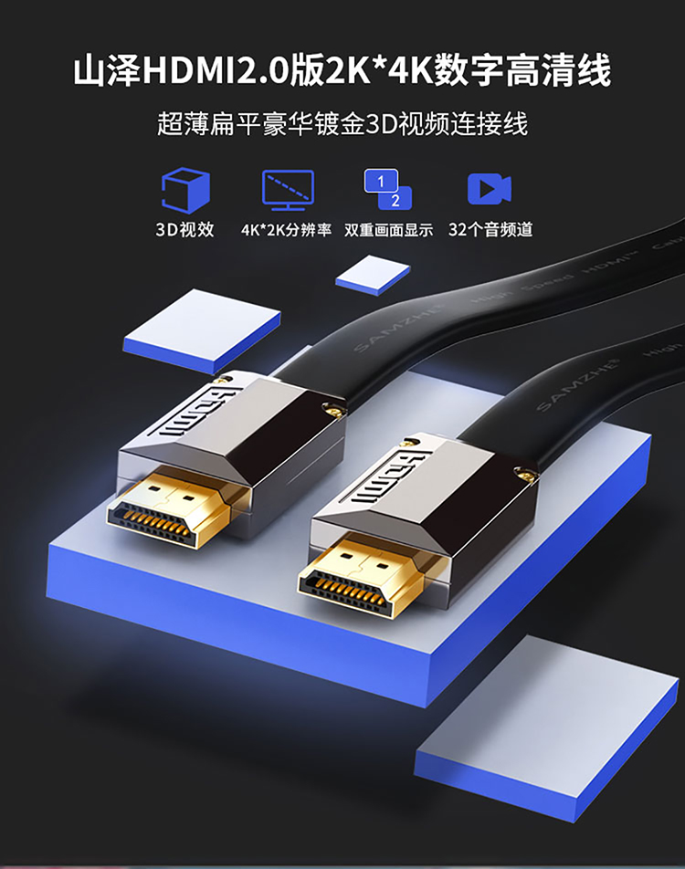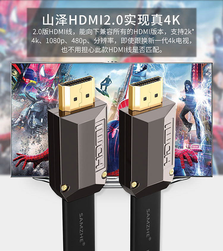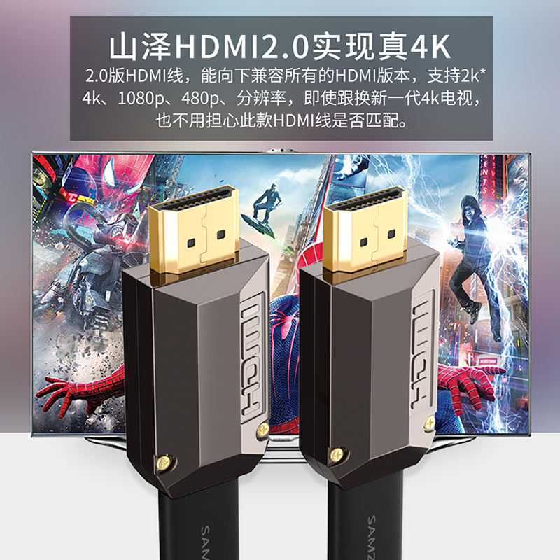 数码通讯  > 数码配件  > 网线/数据线  >  山泽/SAMZHE  >  山泽 GH-05 HDMI线 2.0版4K数字高清线 0.5米 3D视频线 笔记本电脑机顶盒接显示器投影仪连接线 扁线 单位:根
