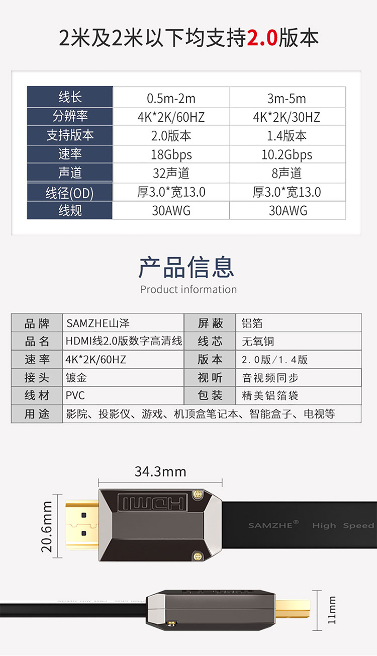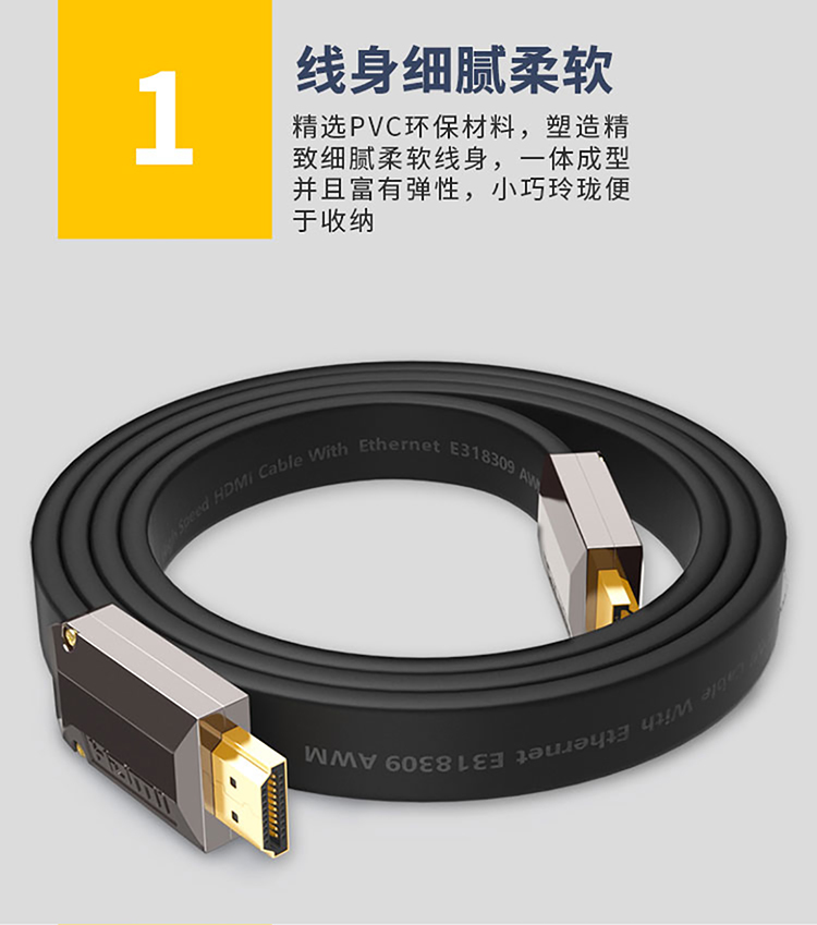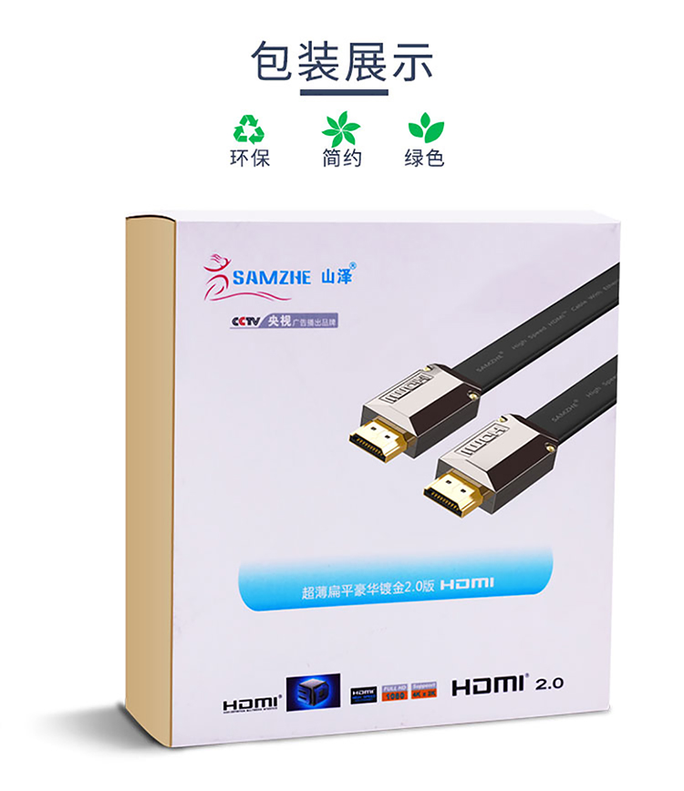 • 商品名称:山泽 GH-05 HDMI线 2.0版4K数字高清线 0.5米 3D视频线 笔记本电脑机顶盒接显示器投影仪连接线 扁线 单位:根