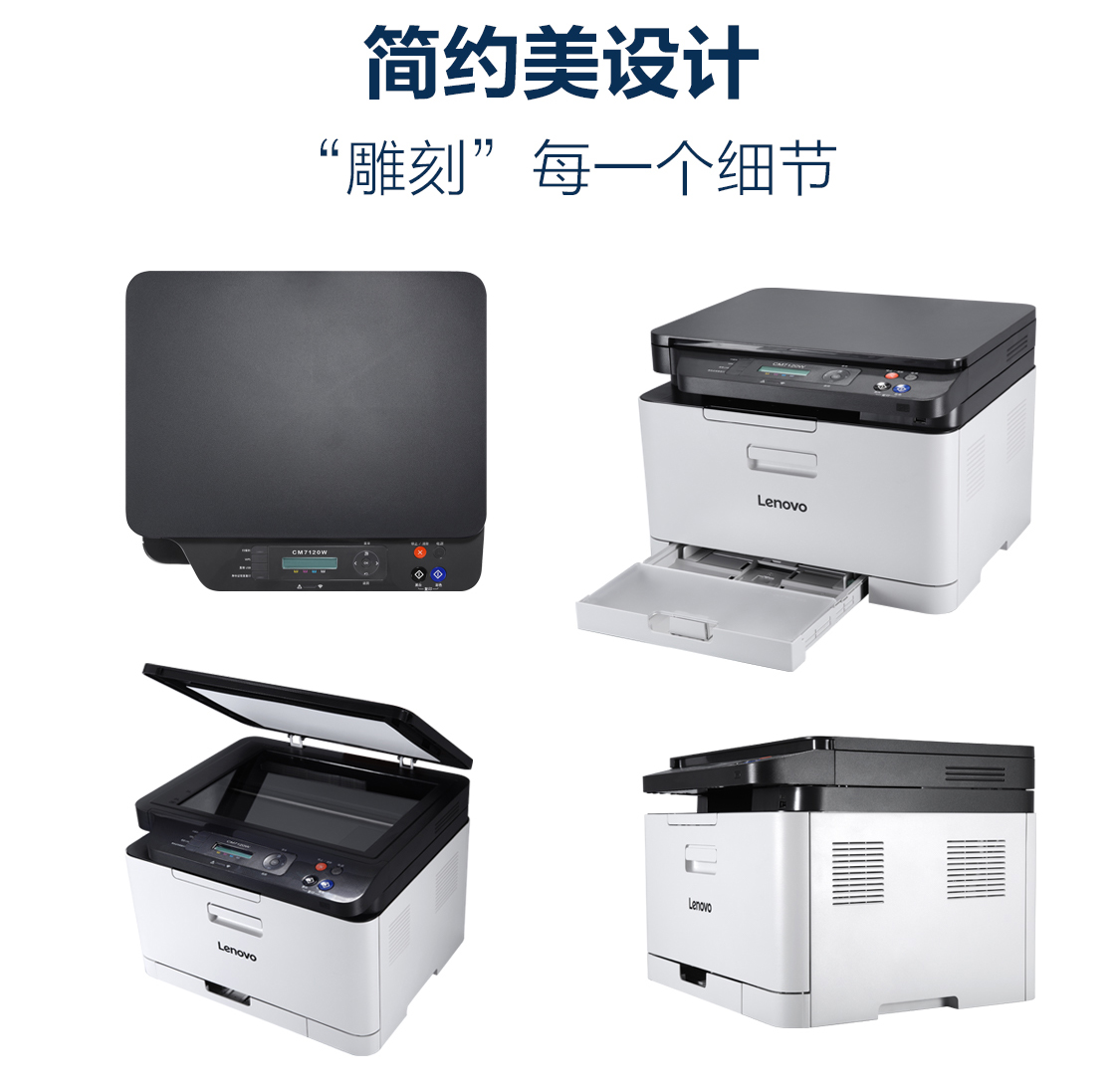联想/lenovo 彩色激光三合一CM7120W(有线+无线) 彩色激光打印机 白色