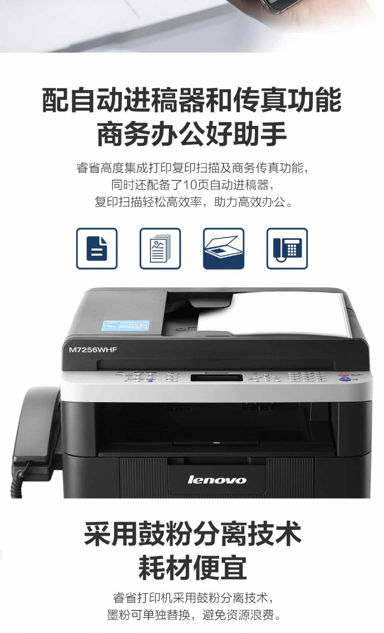 办公设备  > 打印/复印设备  > 复合机/一体机  >  联想/lenovo  >  联想/lenovo 四合一M7256WHF(带手柄带无线) 黑白激光多功能一体机 黑色