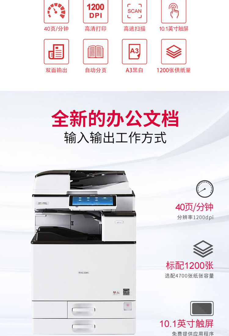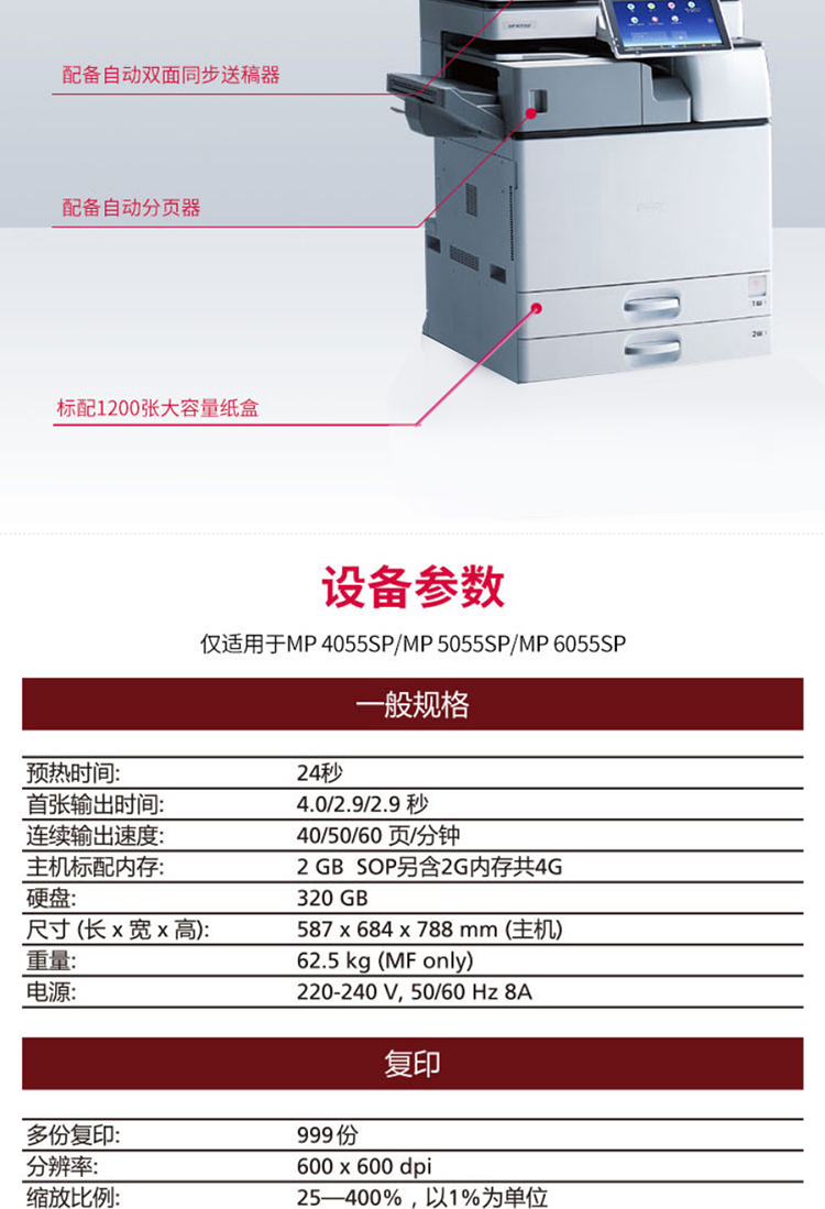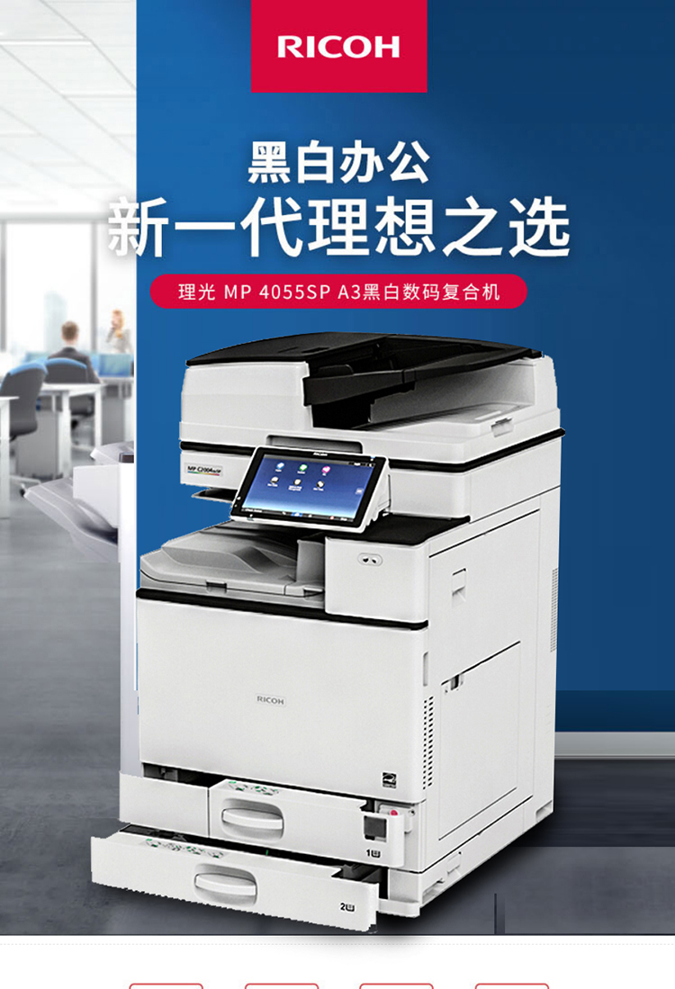 • 商品名称:理光 MP 4055SP A3黑白复合机多功能一体机(主机+送稿器+自动分页器+工作台) 白色(单位:台)