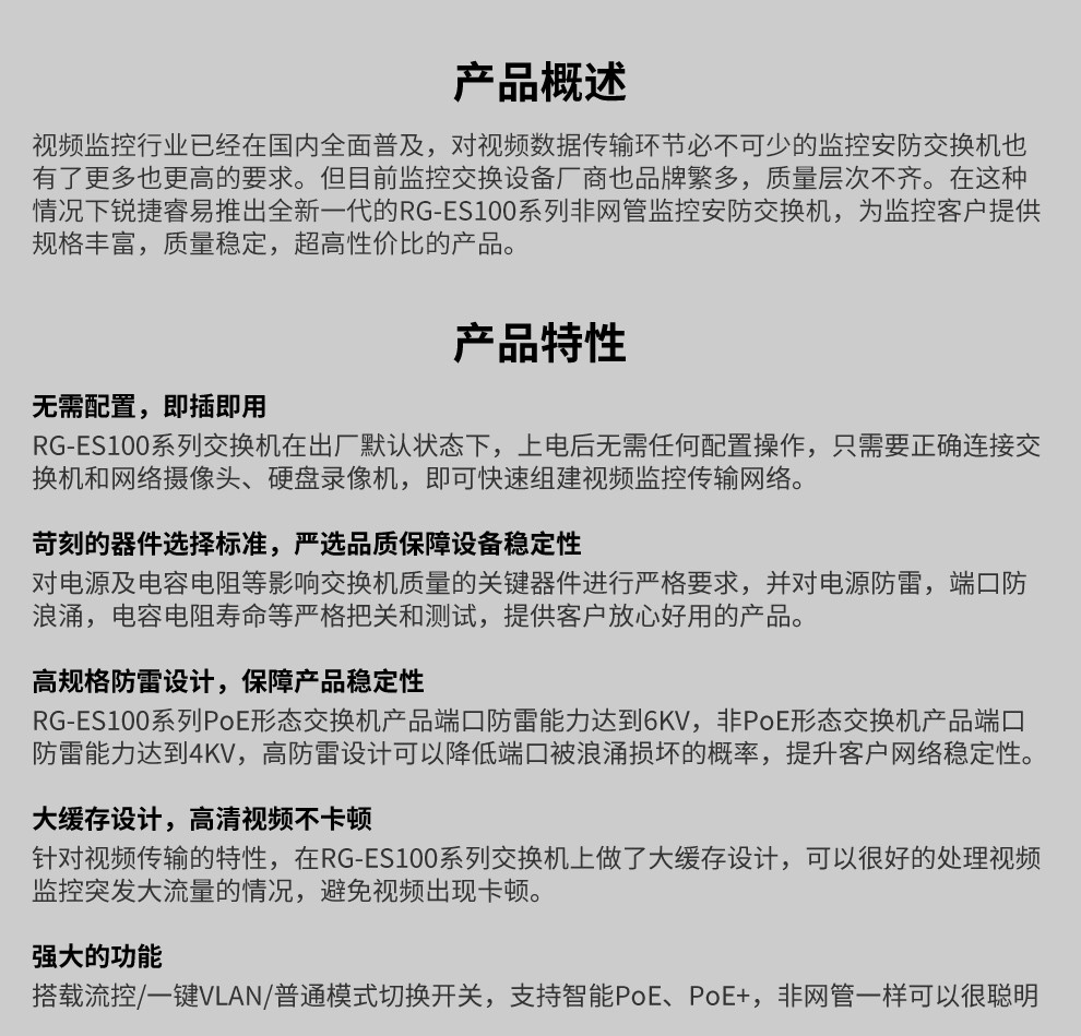 • 商品名称:锐捷(RUIJIE) )RG-ES118GS-P 16口 非网管交换机 监控安防专用交换机 (单位:台)