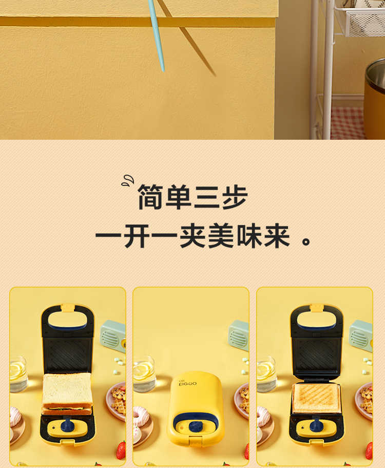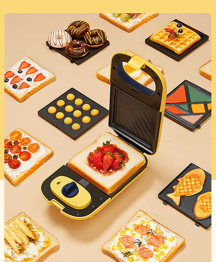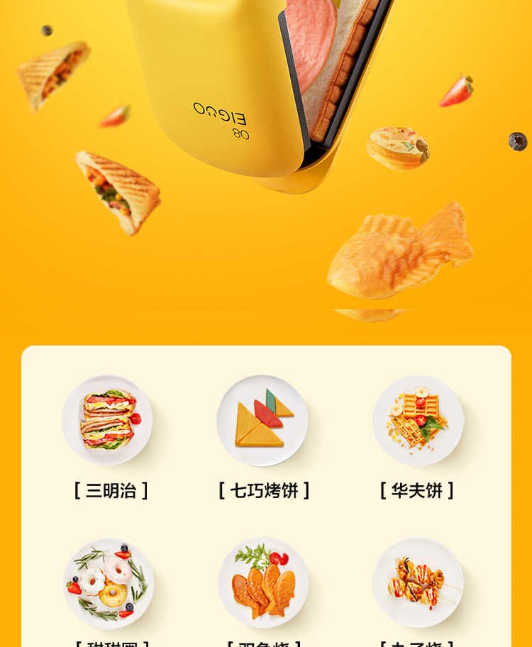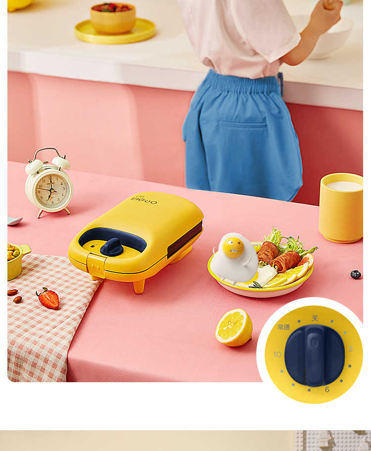 商品名称: 美的 JK1312P201Y 14*24.4*9.7cm煎烤机 多功能双面煎烤早餐机 (线下同款)黄色 (单位:台)