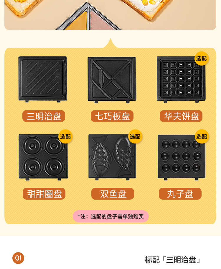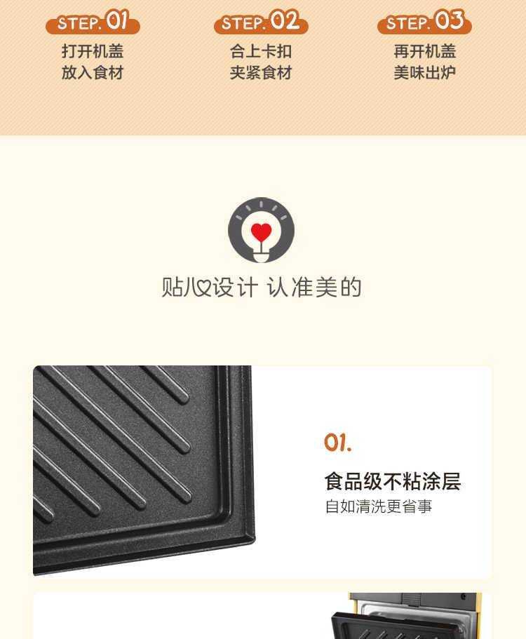 生活电器  > 厨房小家电  > 煎烤机/电饼档  >  美的/Midea  >  美的 JK1312P201Y 14*24.4*9.7cm煎烤机 多功能双面煎烤早餐机 (线下同款)黄色 (单位:台)