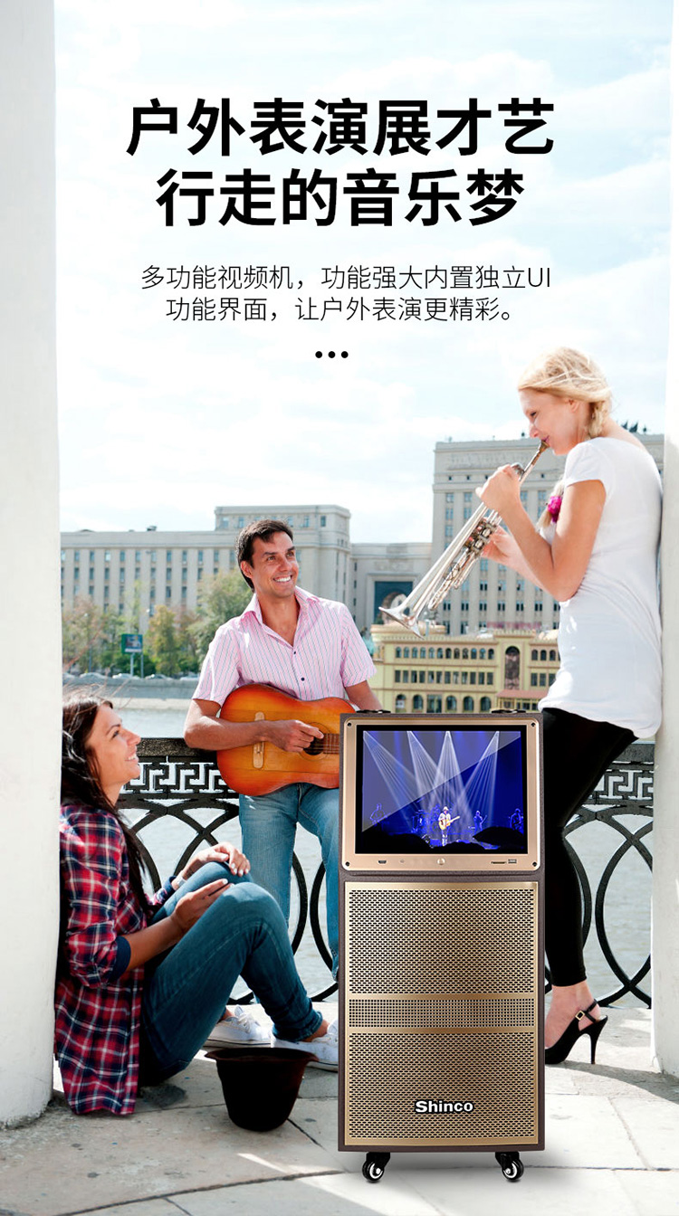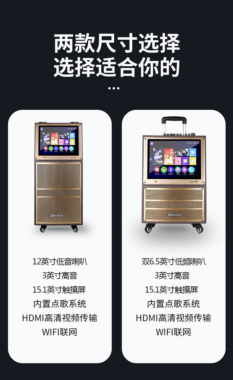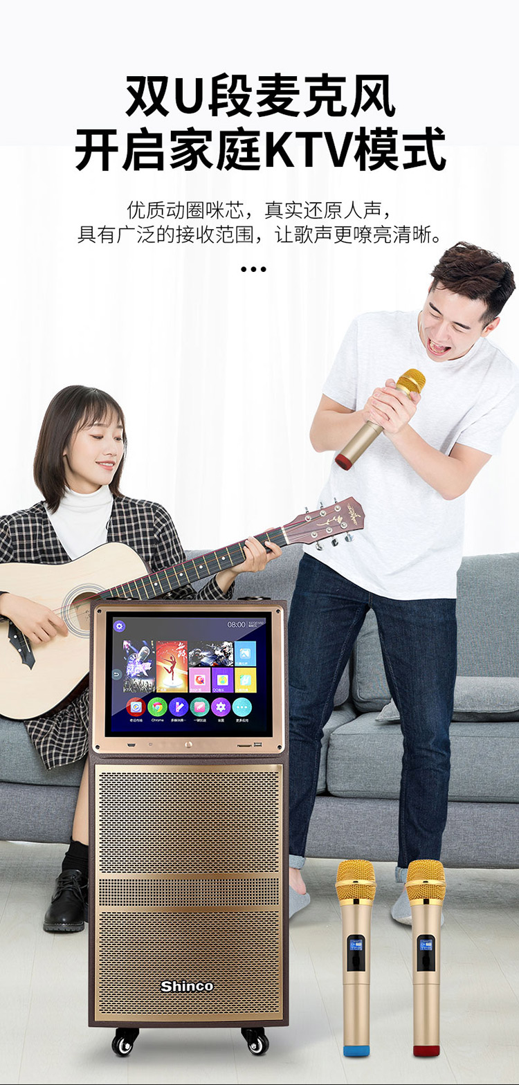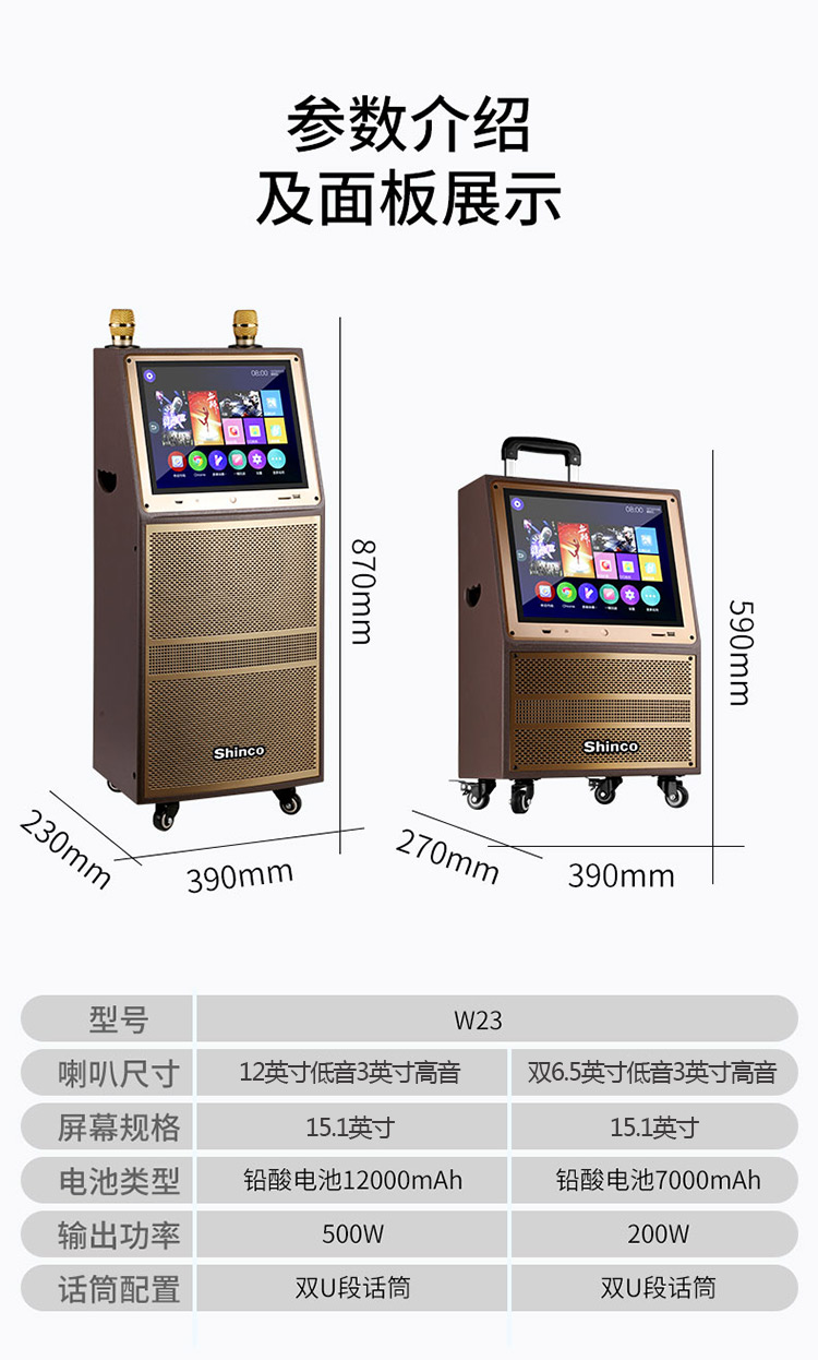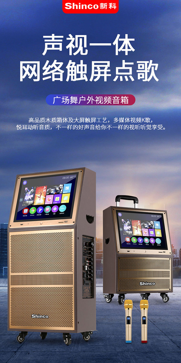 • 商品名称:新科 W23 12英寸 视频机广场舞音响地摊叫卖家用KTV网络点歌机拉杆音箱 金色(单位:台)