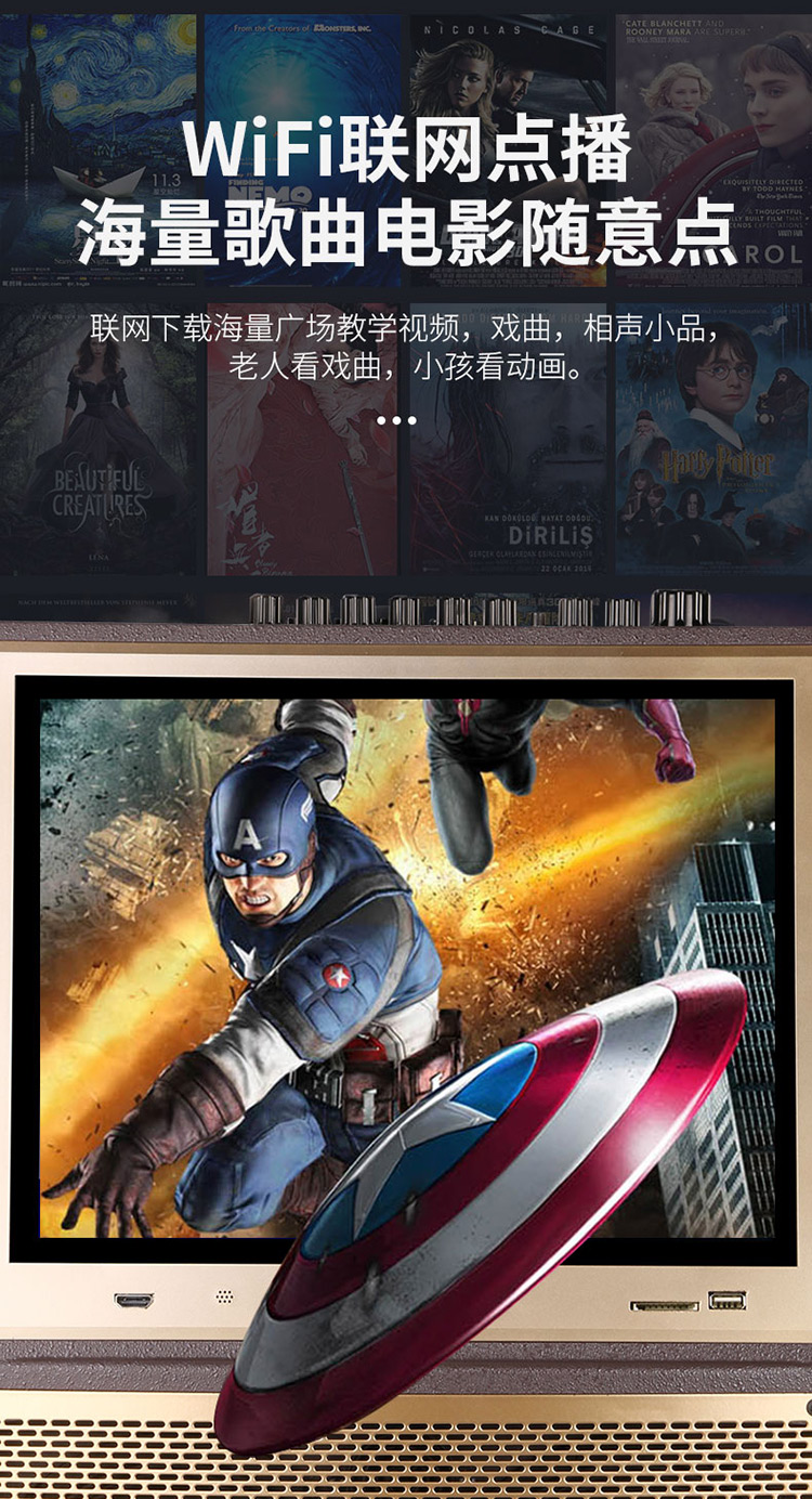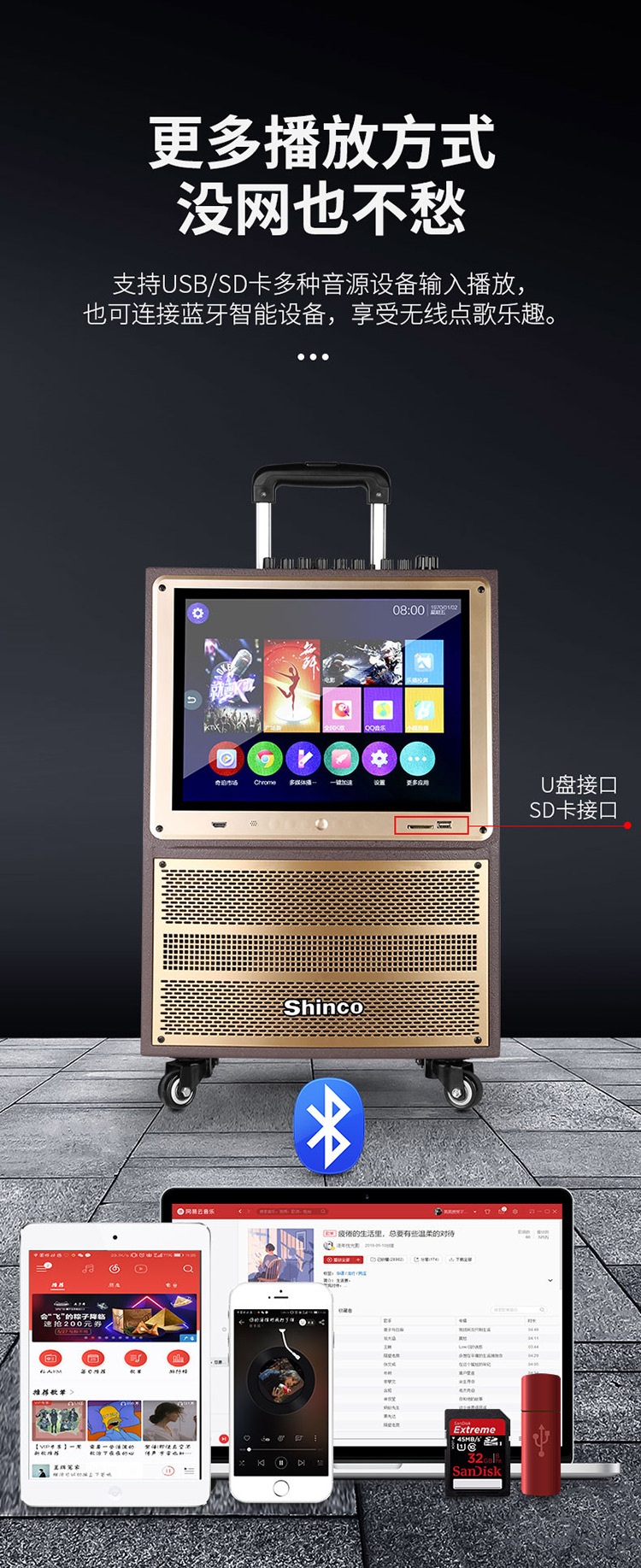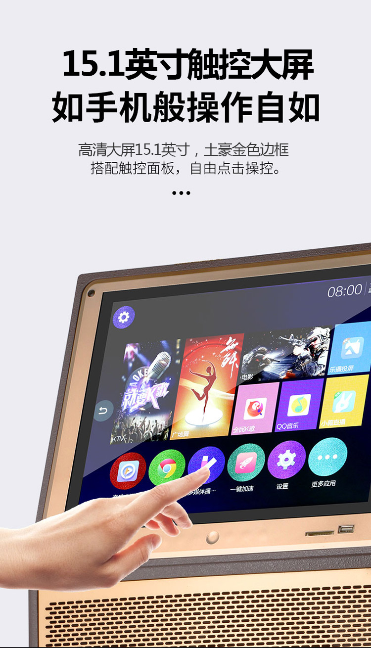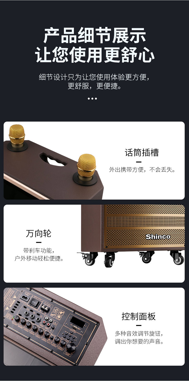 • 商品名称:新科 W23 12英寸 视频机广场舞音响地摊叫卖家用KTV网络点歌机拉杆音箱 金色(单位:台)