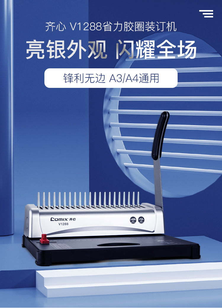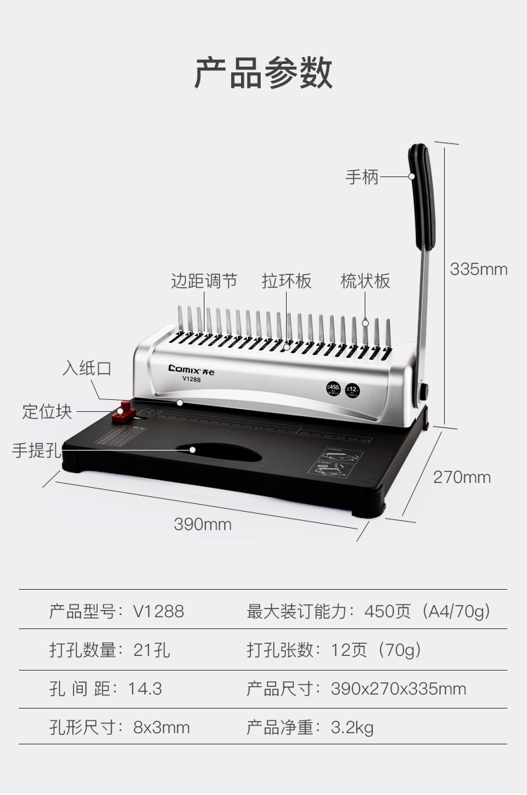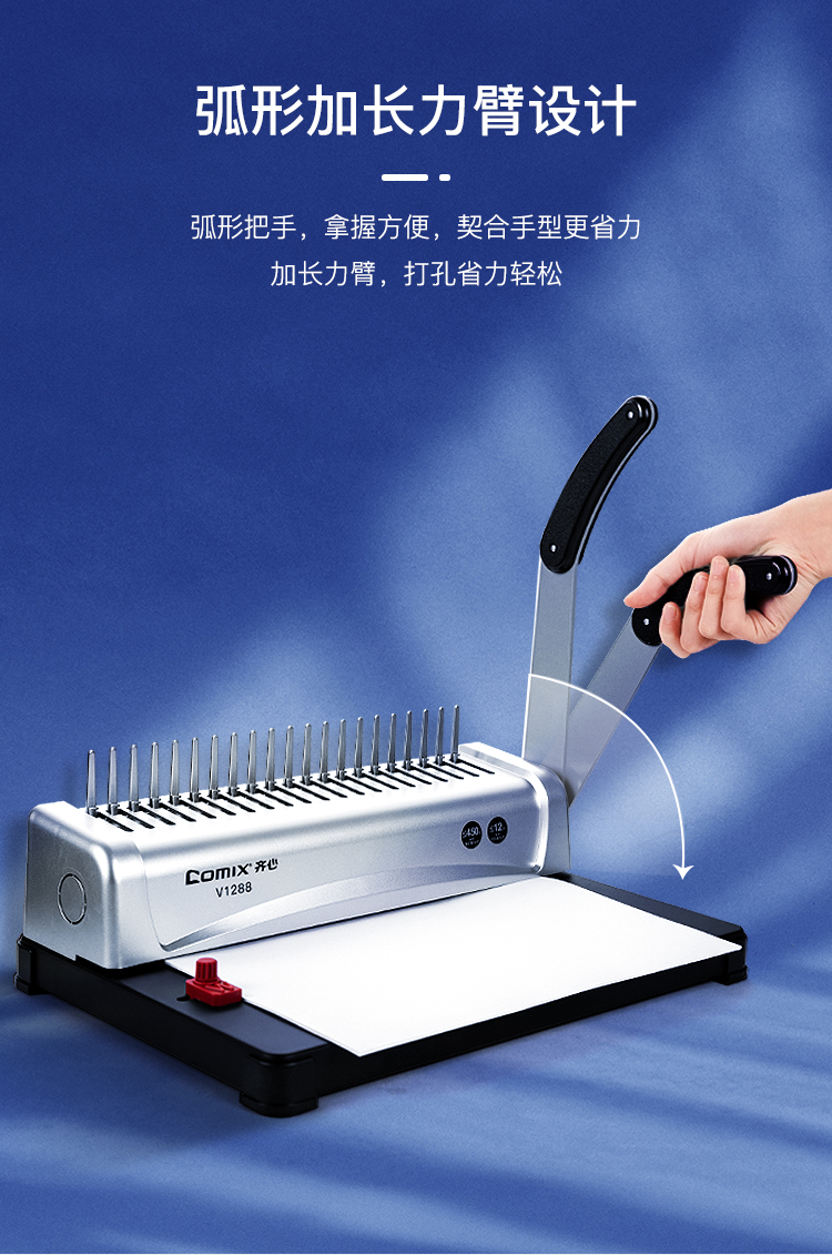 办公设备  > 财务/行政设备  > 装订/塑封设备及配件  >  齐心/COMIX  >  齐心 V1288 梳式财务凭证装订机省力胶圈打孔机/21孔 文本/招标书财务装机用品打孔(单位:台)