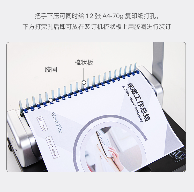 齐心 V1288 梳式财务凭证装订机省力胶圈打孔机/21孔 文本/招标书财务装机用品打孔(单位:台)