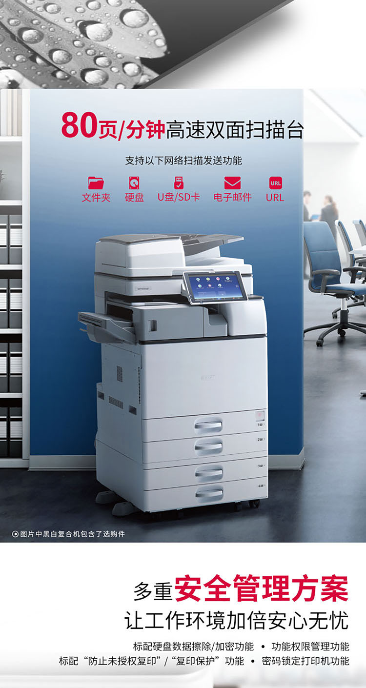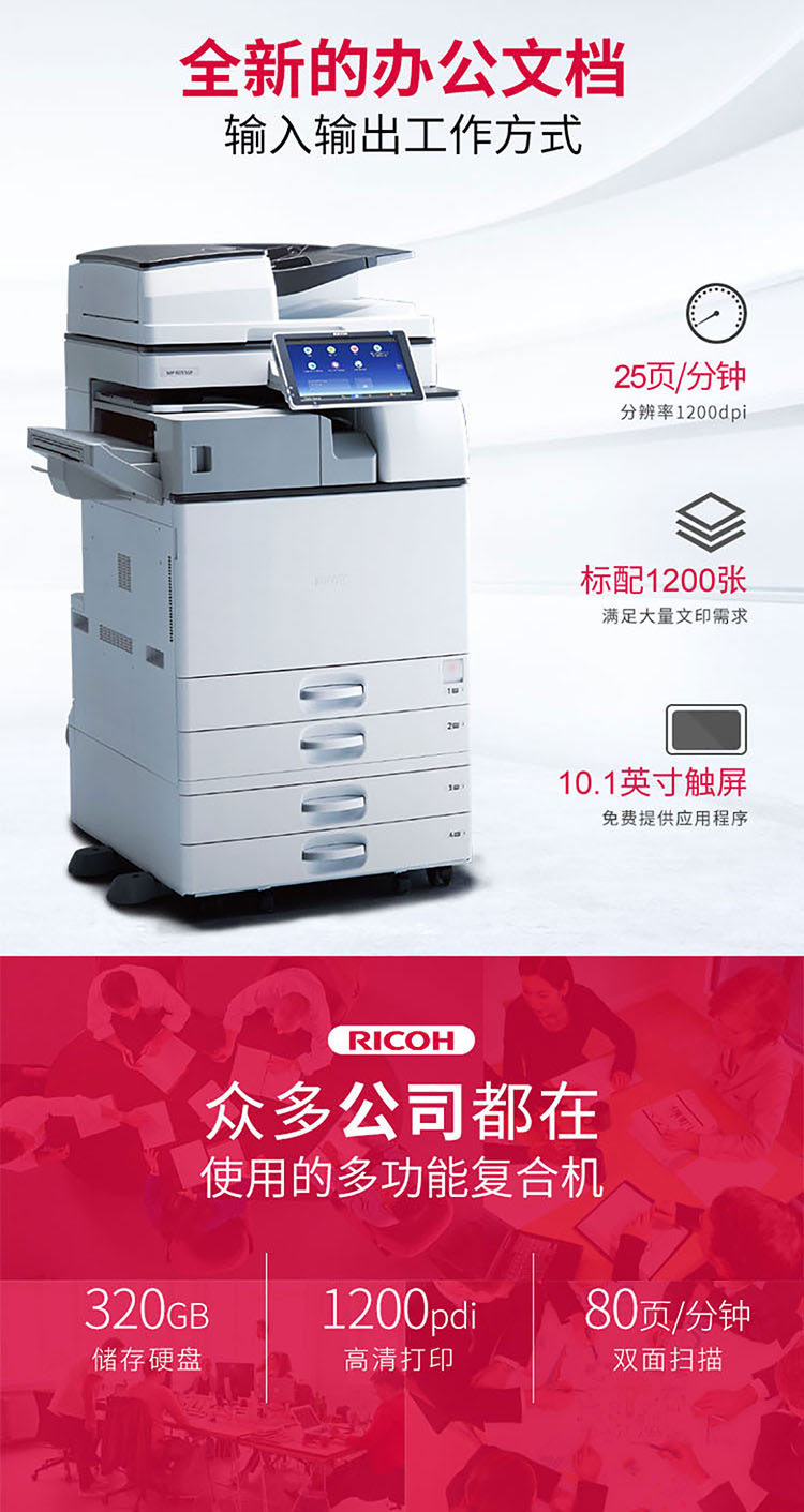 • 商品名称:理光 MP 2555SP A3黑白数码复合机 含盖板+双纸盒(免费上门安装+免费上门售后) A3黑白数码复合机 (计价单位:台) 白色