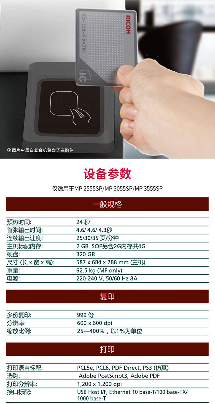 商品名称: 理光 MP 2555SP A3黑白数码复合机 含盖板+双纸盒(免费上门安装+免费上门售后) A3黑白数码复合机 (计价单位:台) 白色