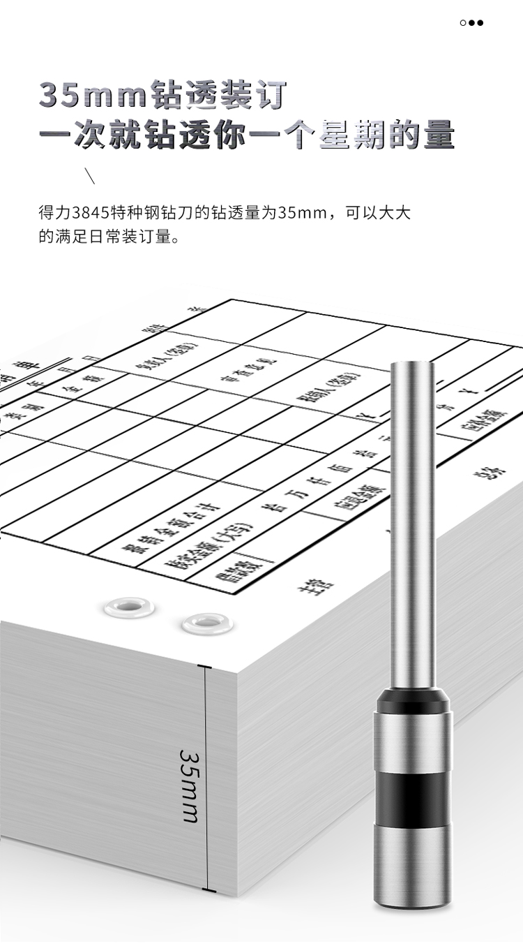 • 商品名称:得力(deli)3845 φ6.0*35mm财务装订机专用钻刀(适用得力33888/14608/装订机)(单位:个)