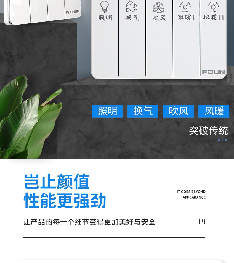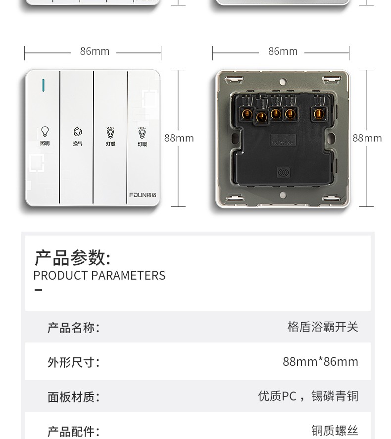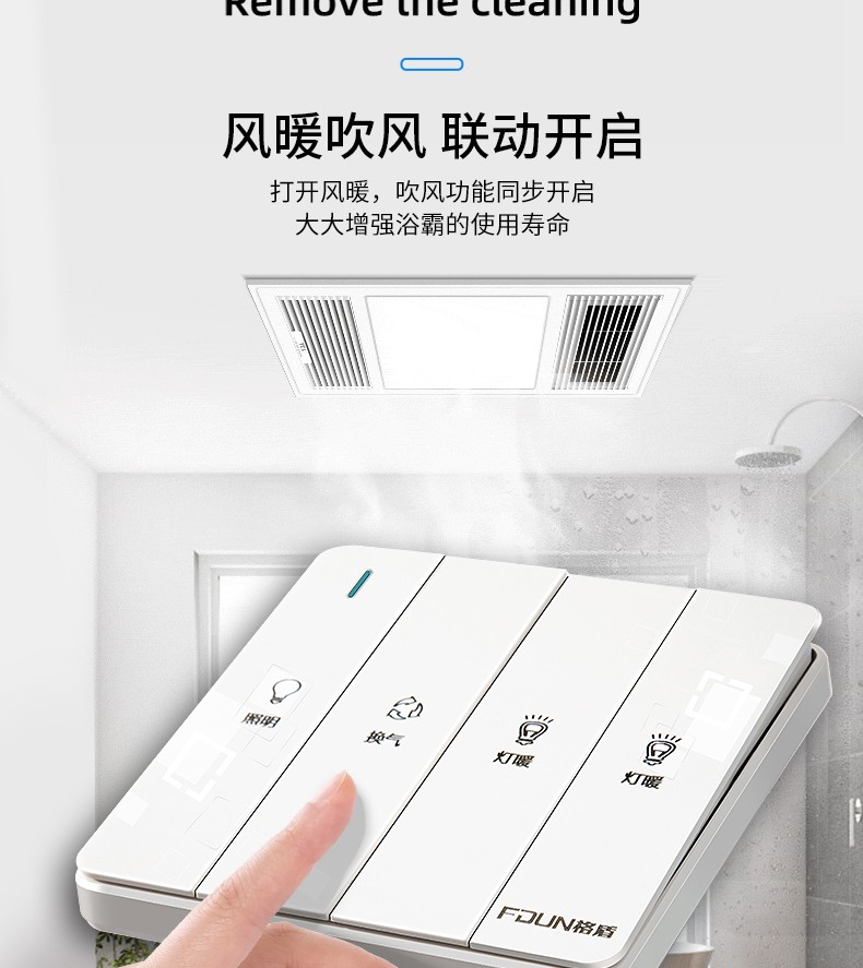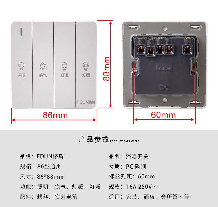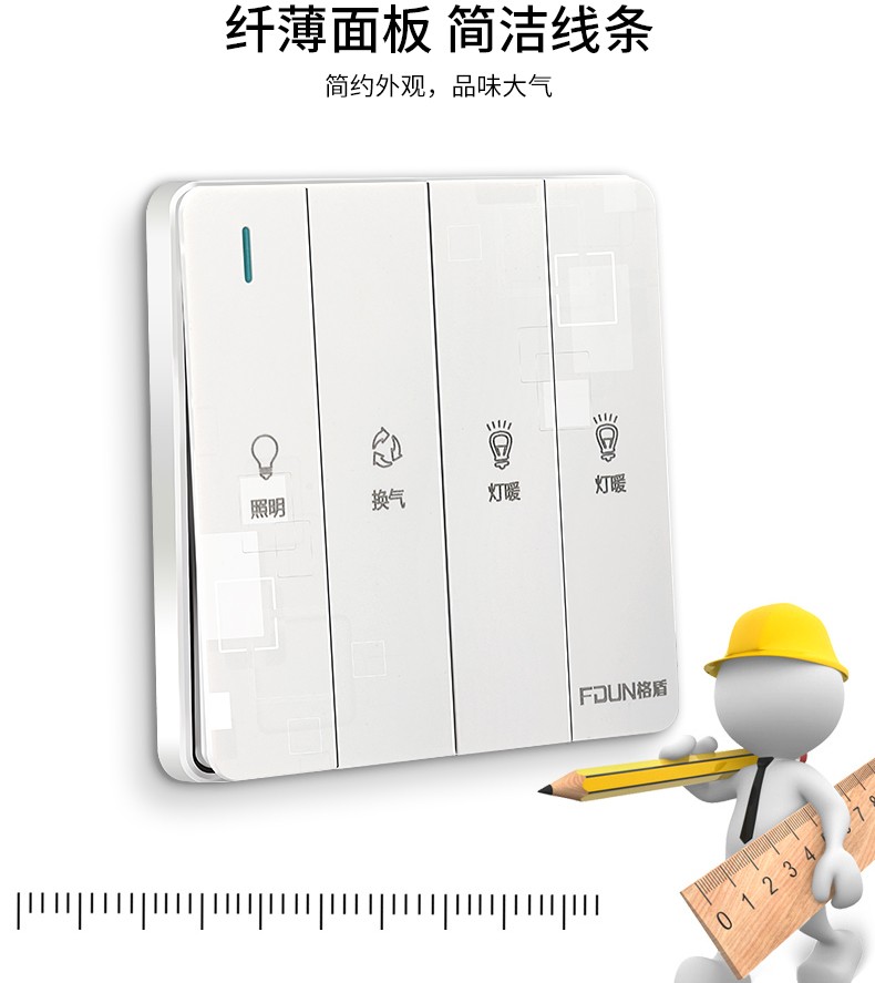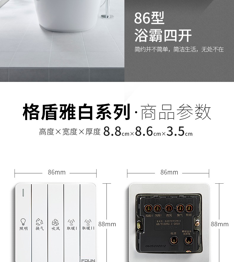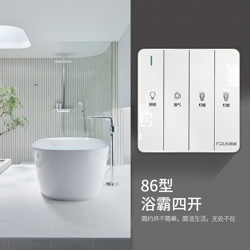 • 商品名称:格盾 86型 16A 时尚四开带防水盒大功率浴霸开关 白色(单位:套)